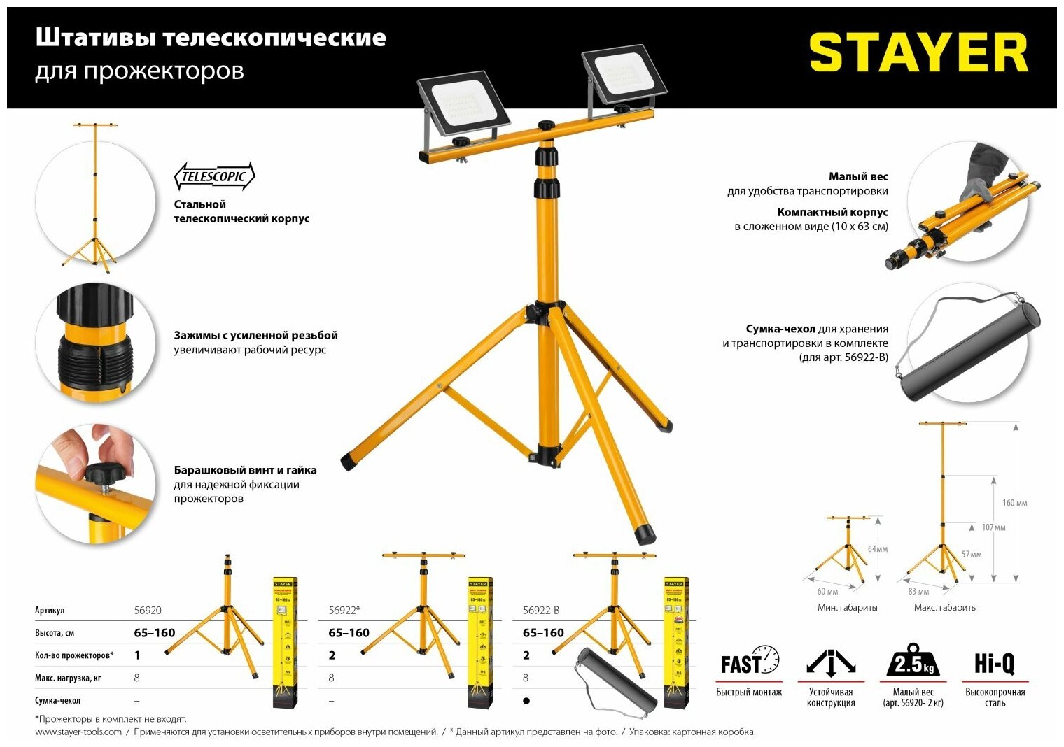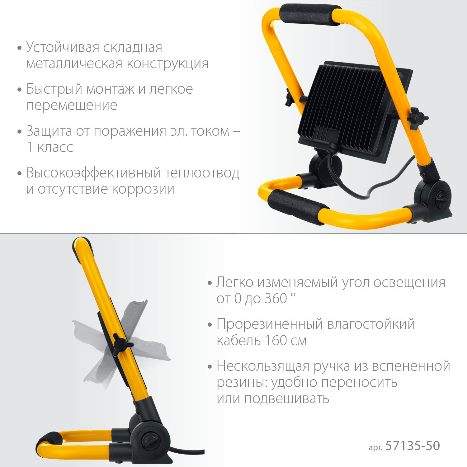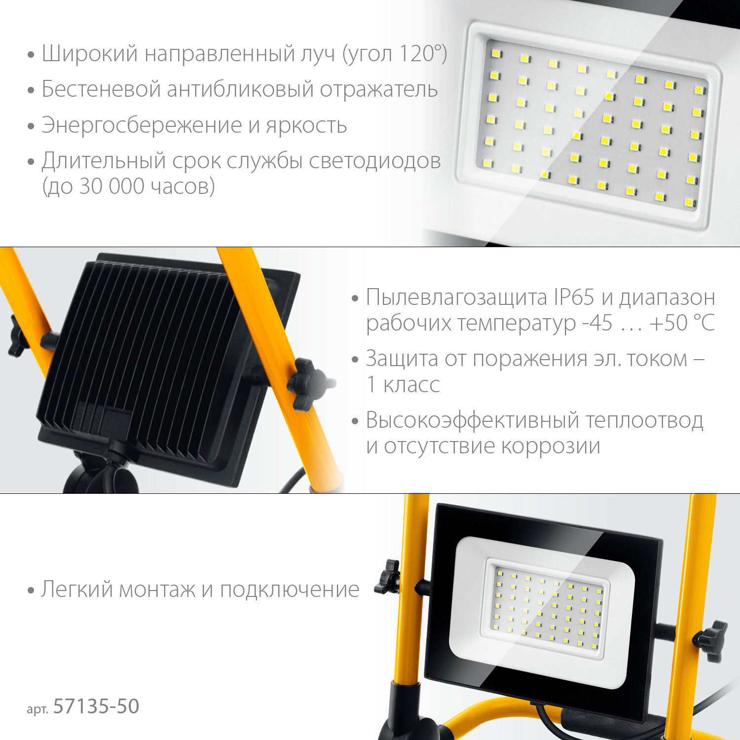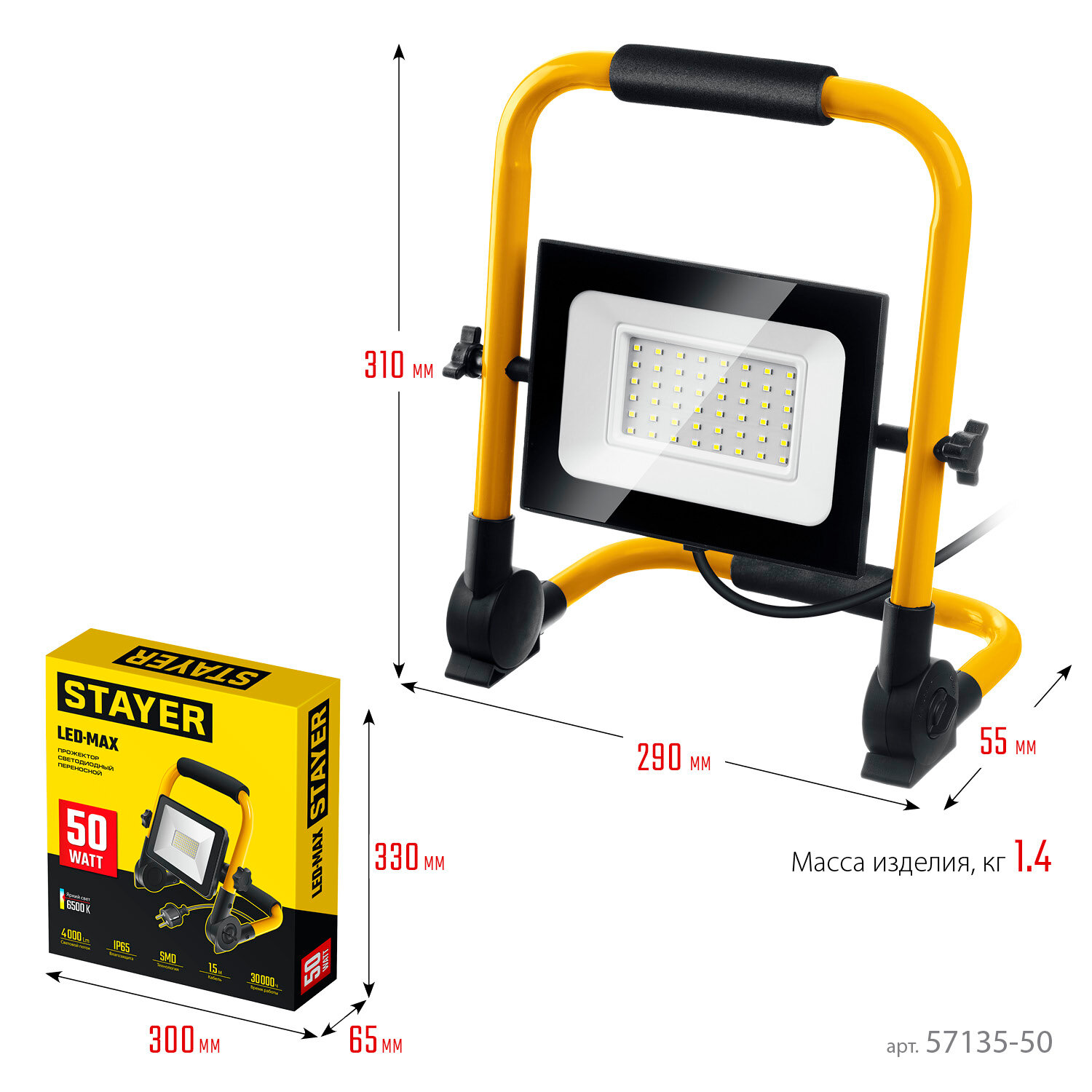 Светодиодный прожектор STAYER 50 Вт переносной, LED-MAX (57135-50) интересное: