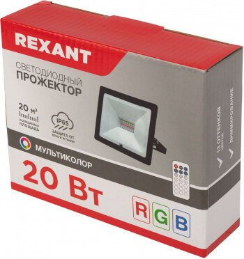 REXANT Прожектор светодиодный с пультом 20 Вт, свечение мультиколор RGB 605-011