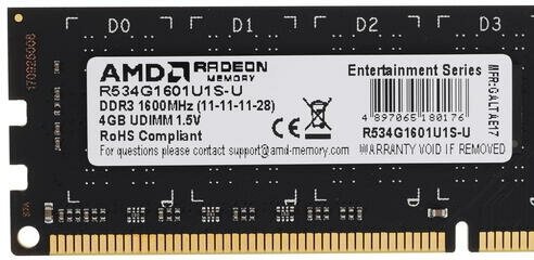 Оперативная память AMD R534G1601U1S-U DDR3 - 1x 4ГБ 1600МГц, DIMM, Ret