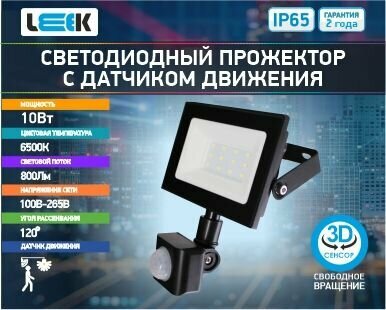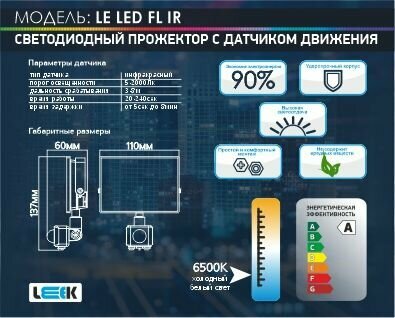 Прожектор с датчиком движения, уличный светильник светодиодный LE LED FL IR BLACK IP65 холодный белый интересное: