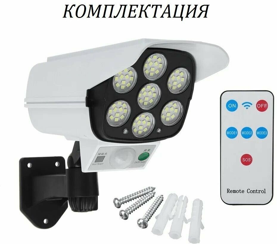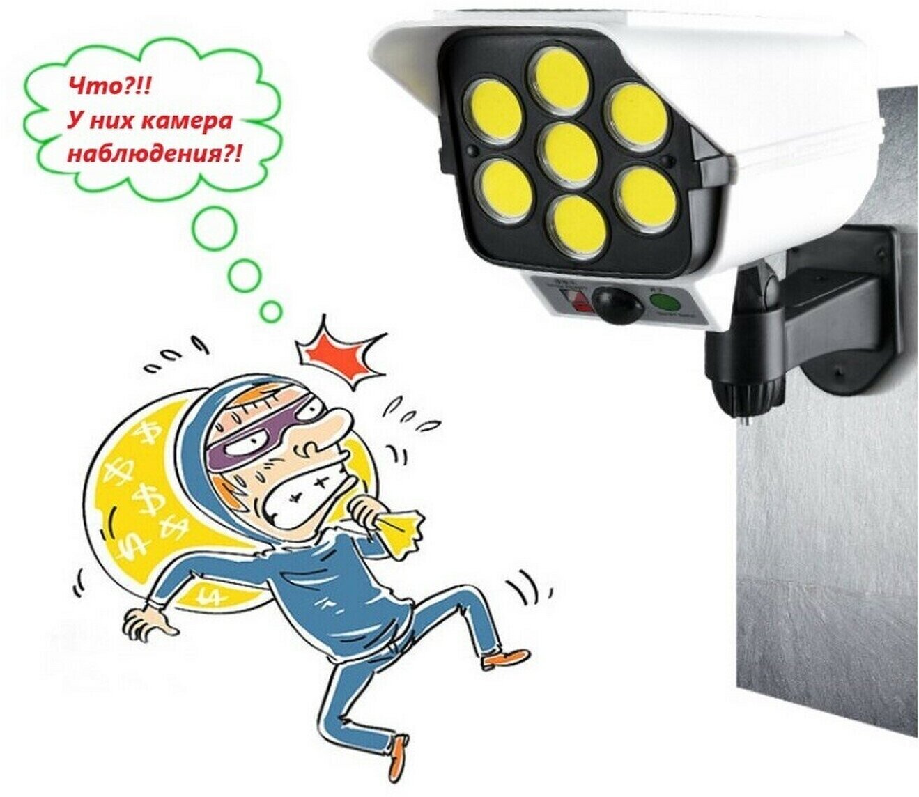 прожектор 2 в 1 с датчиком движения, муляж камеры наблюдения на солнечной батарее интересное: