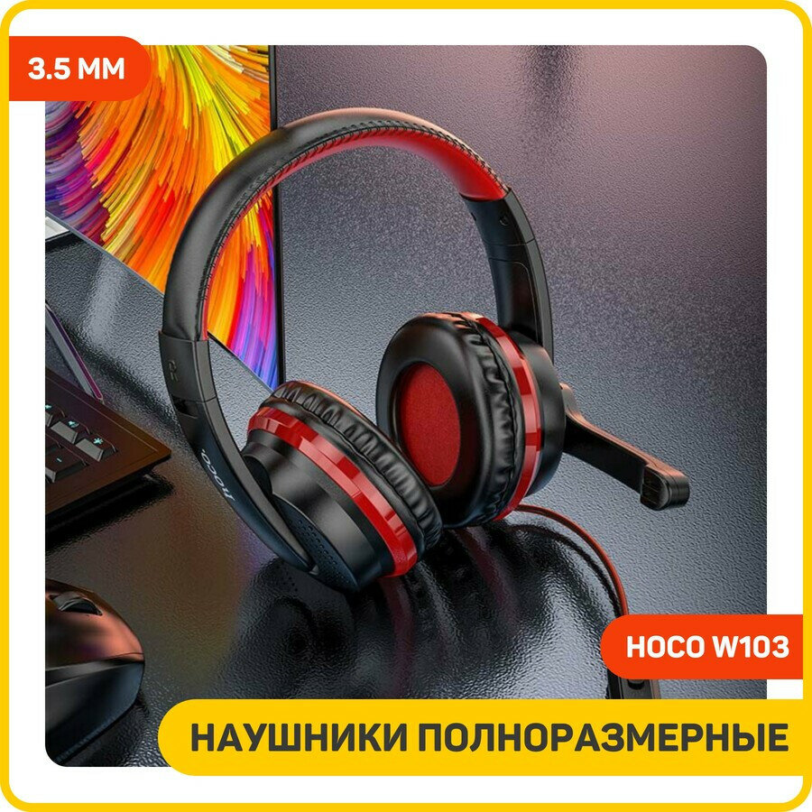 Наушники проводные W103, HOCO, игровые с микрофоном, черные