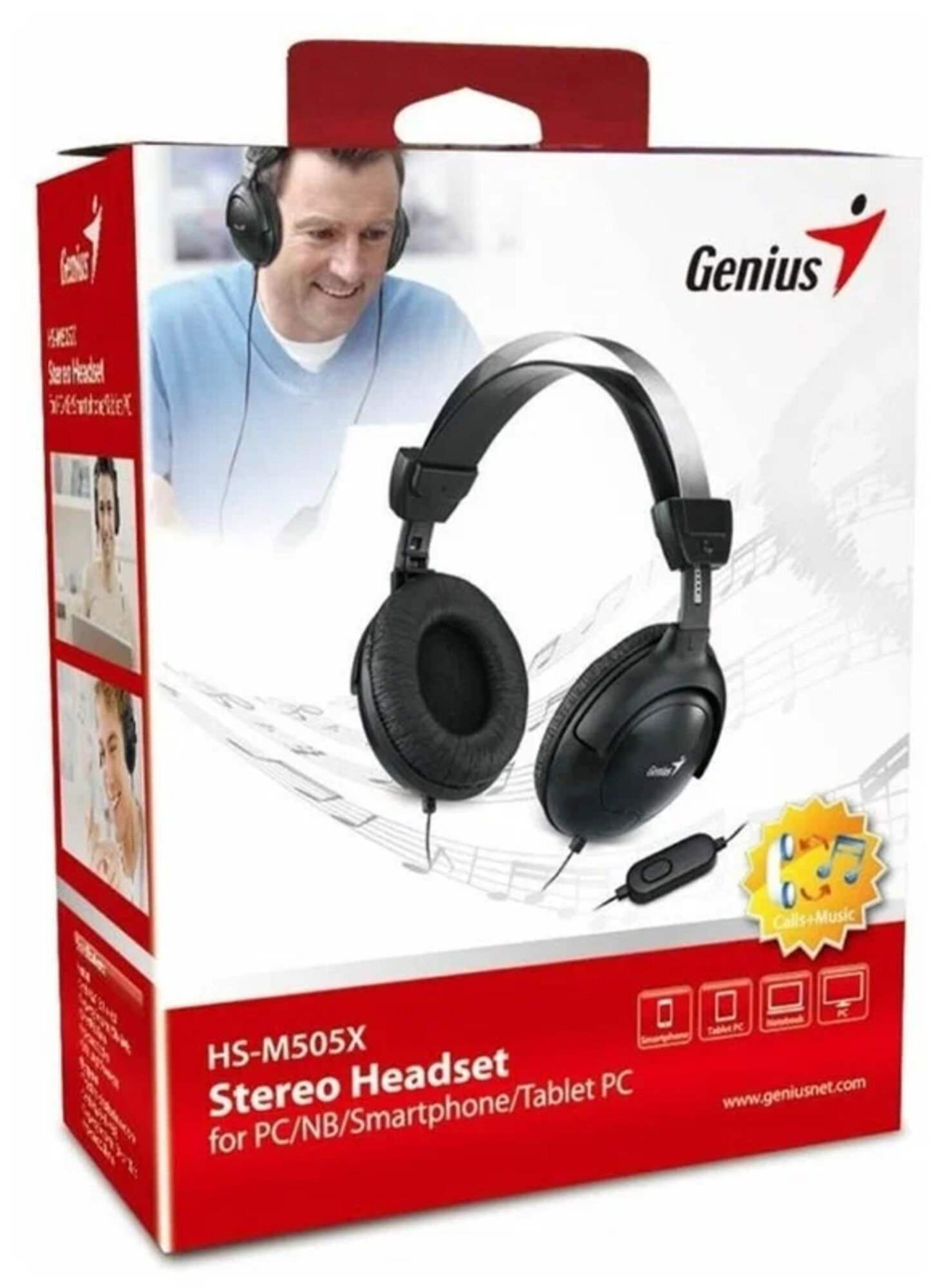 Гарнитура Genius HS-M505X, 1х mini jack 3.5mm, полноразмерные наушники, микрофон на проводе, длина провода 2м, подходит для мобильных устройств