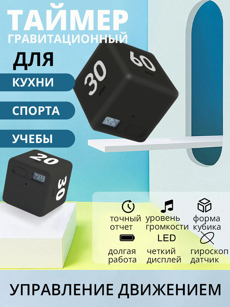Купить Таймер кубик для кухни спорта и обучения / куб времени с гироскоп датчиком / черный