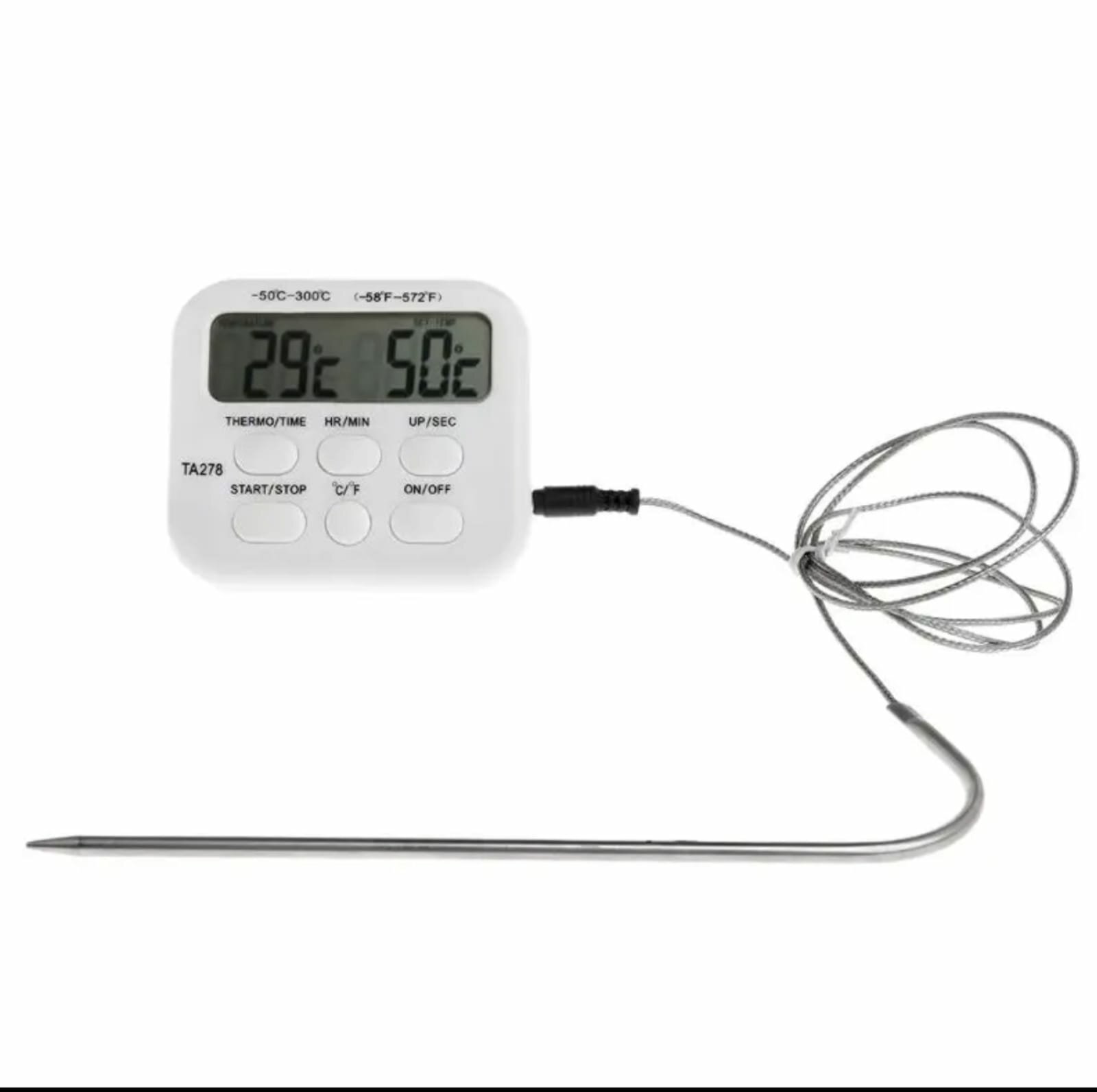 Кулинарный термометр электронный со щупом из нержавеющей стали, термометр для еды, мяса, вина, провод 1 метр / таймер кухонный