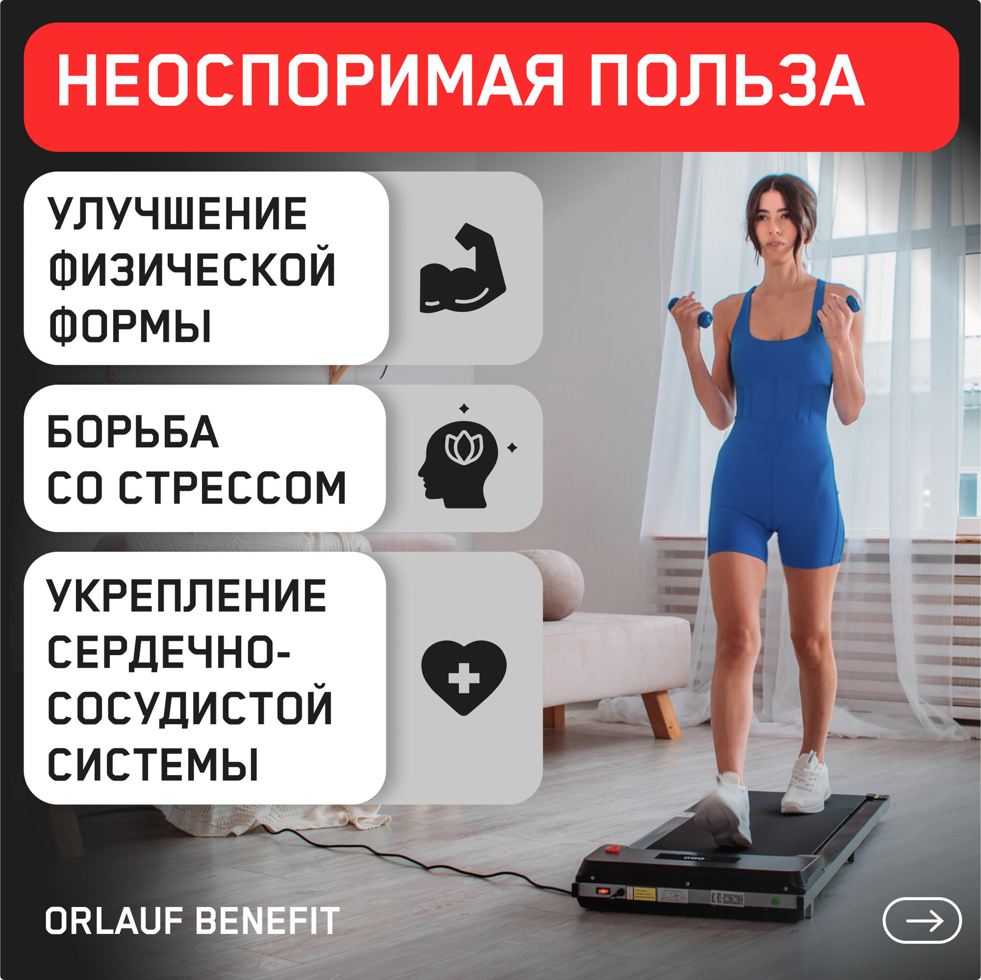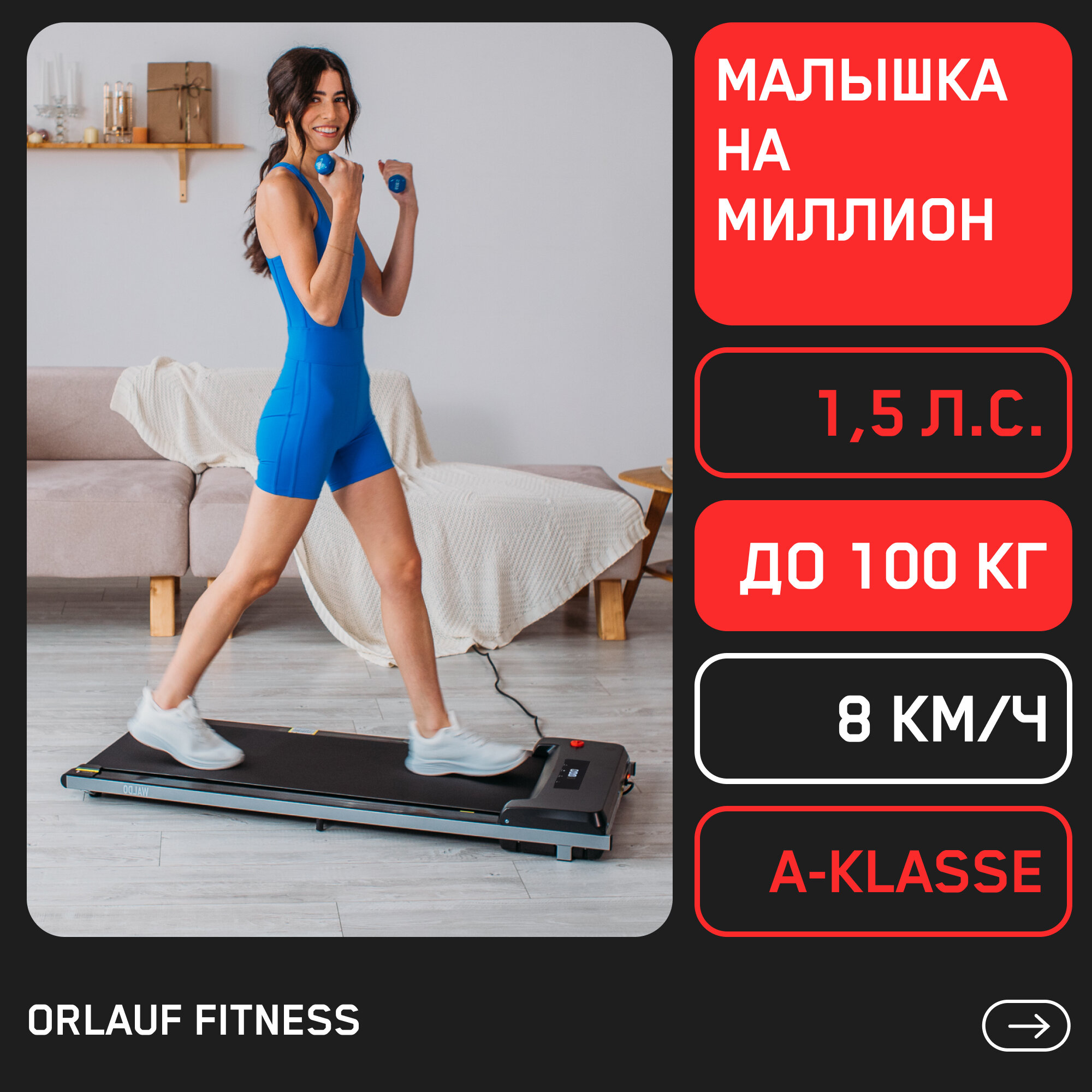 Беговая дорожка для дома Orlauf Waldo / Электрическая / Ультра компактная / Без поручней интересное: