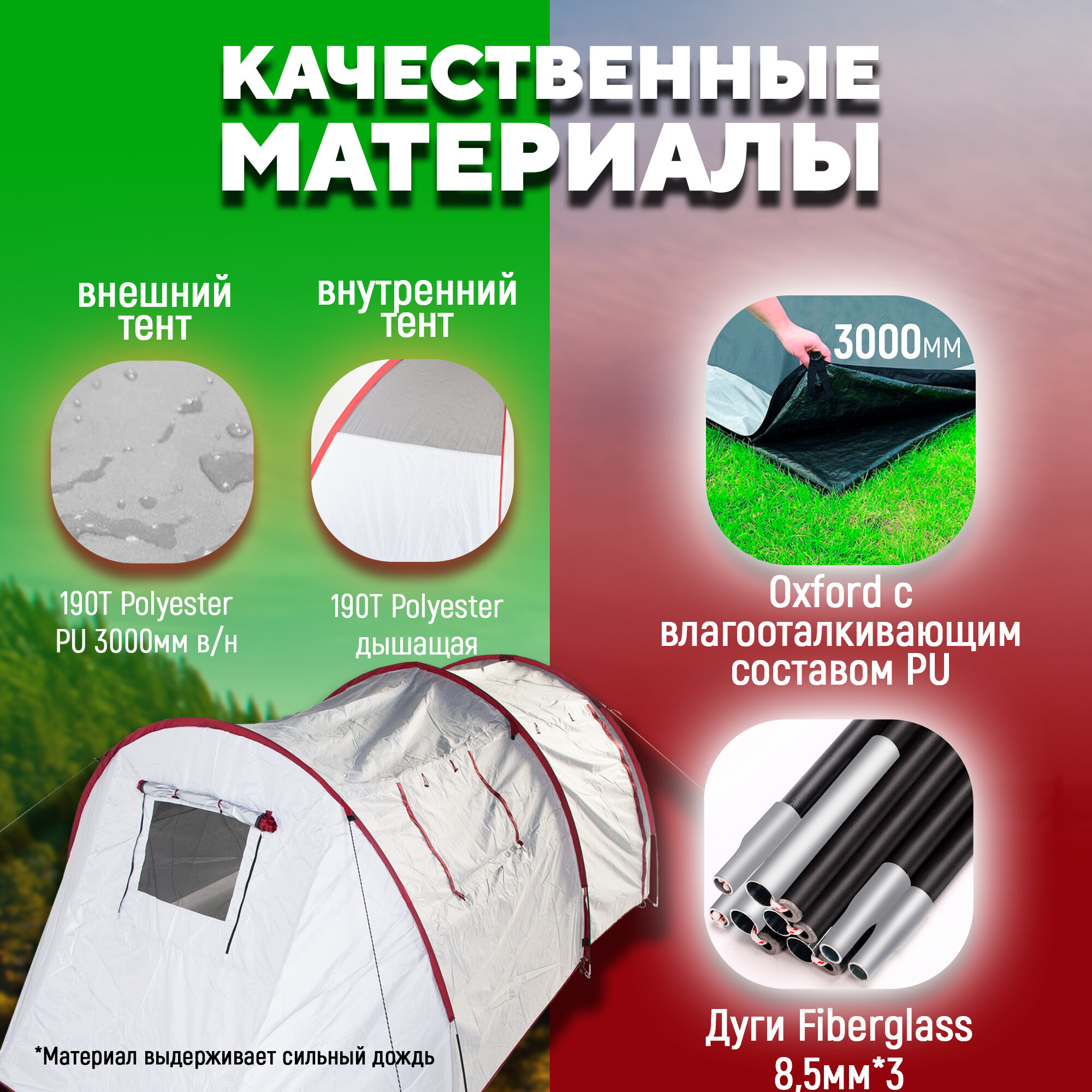 | Материал тента | хлопок + полиэстер (180T POLYESTER PU800MM) |