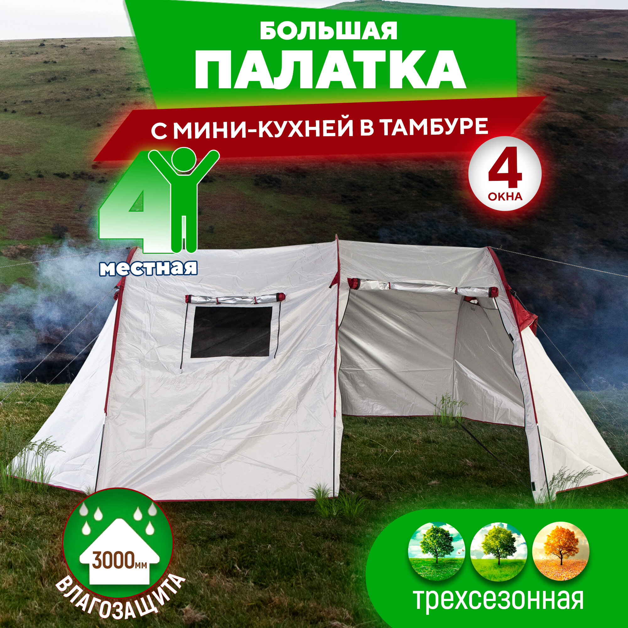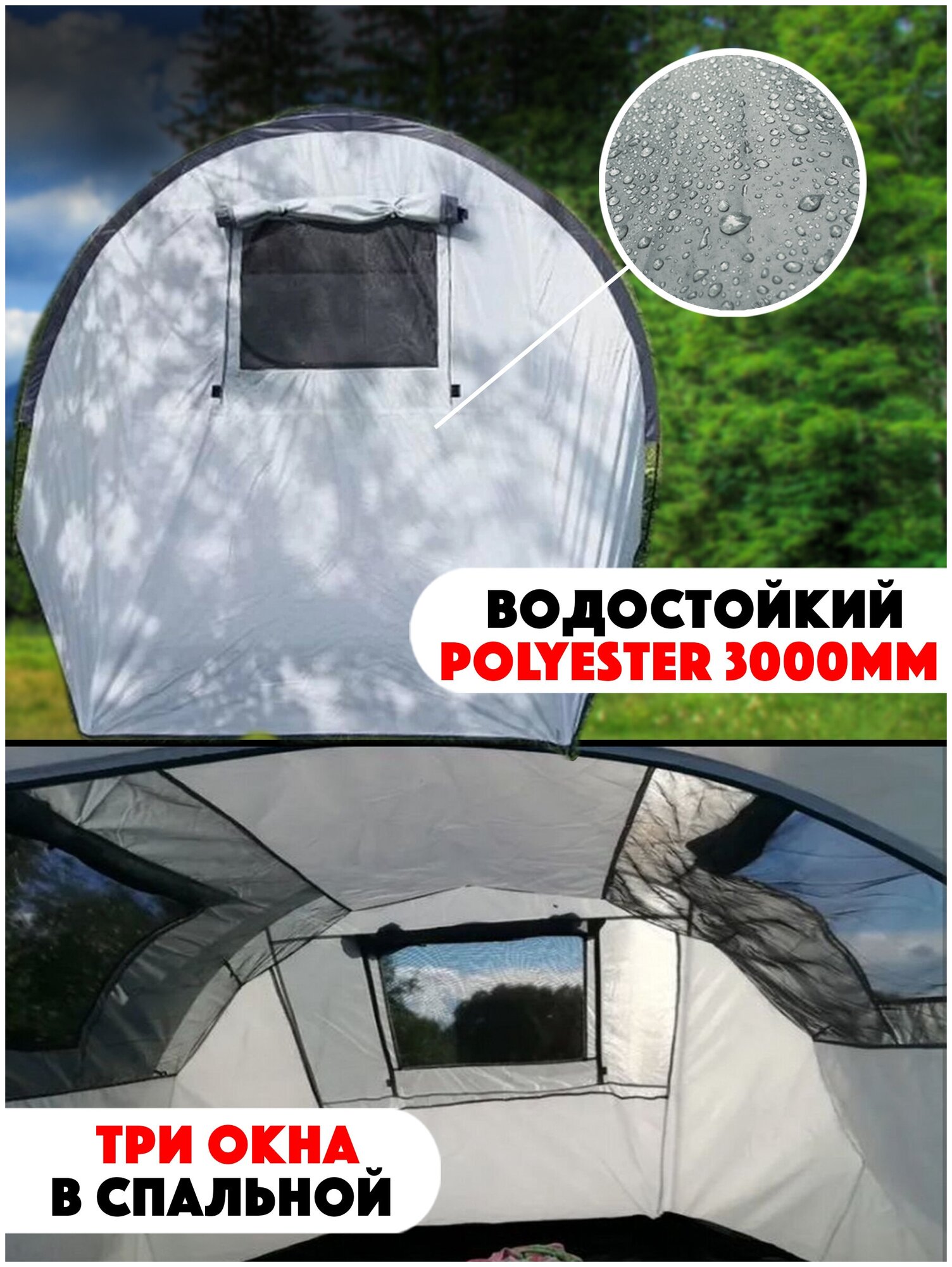 | Водостойкость тента/дна | 1000 / 3000 мм в.ст. |