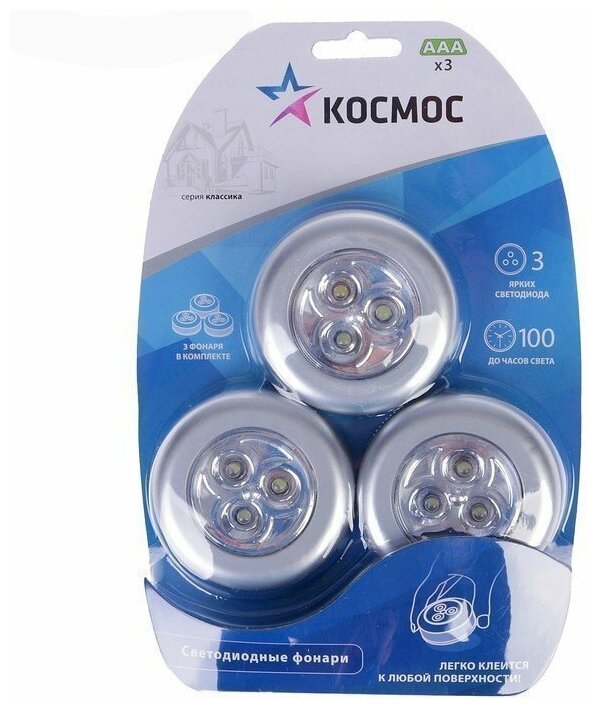 Светильник самоклеящийся «Классика» 3020LED (3хLR03) (уп.3шт) Космос KOC3020LED