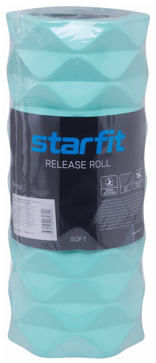 Массажный ролик Starfit FA-507 EVA/PP, средняя жесткость, 32.5x12.5 cм, мятный/серый УТ-00019053