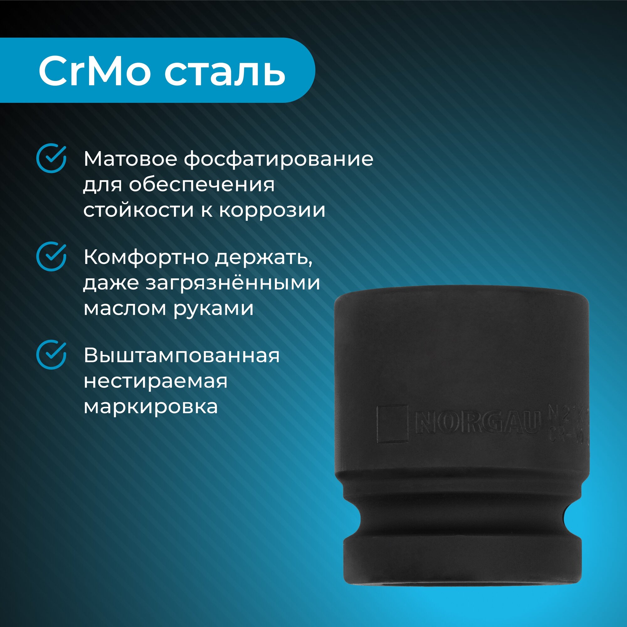 Головка ударная торцевая под квадрат 1" NORGAU Industrial 41 мм шестигранная из CrMo стали, DIN 3129 интересное:
