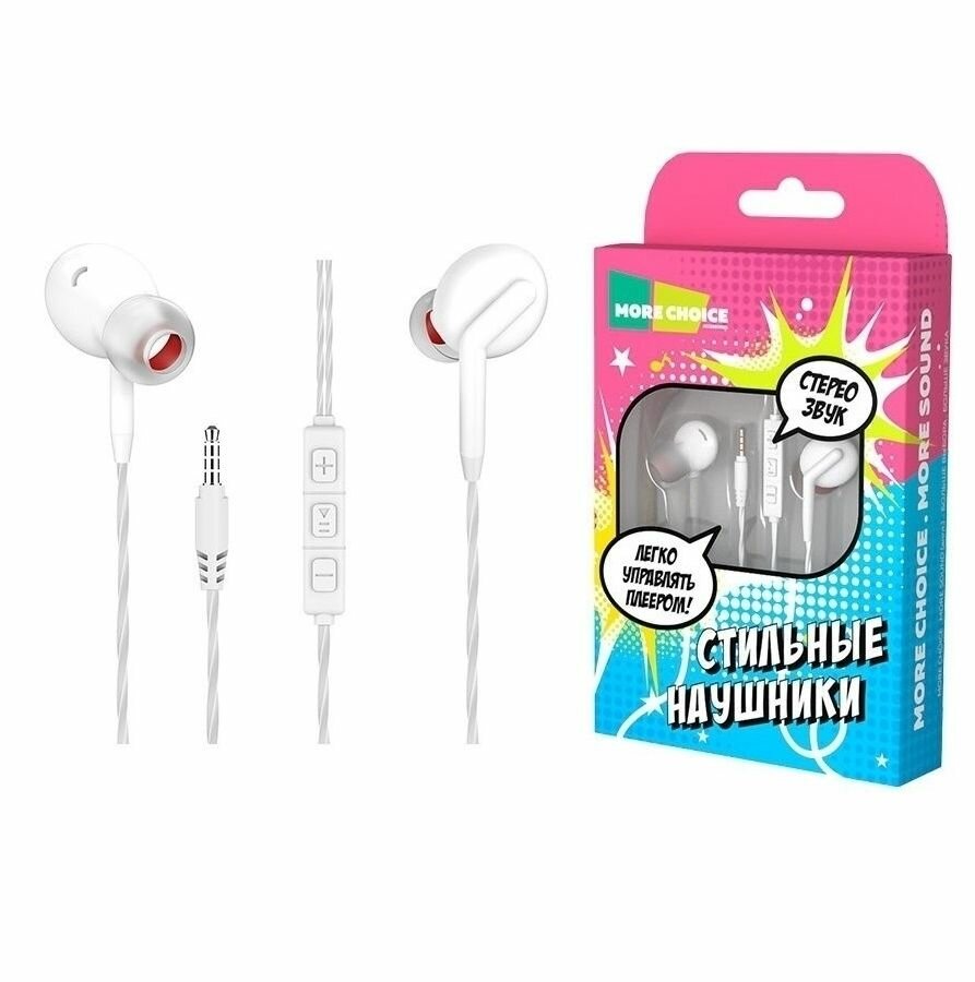 Наушники вакуумные AUX разъём с МК и рег.громкости длина 1.2м More Choice G40 (White)