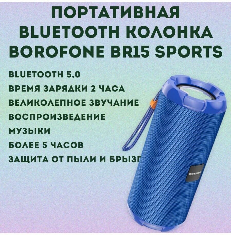 Портативная колонка BOROFONE BR15, Bluetooth 5.0 2*5W 1200mAh синий (6931474749888)