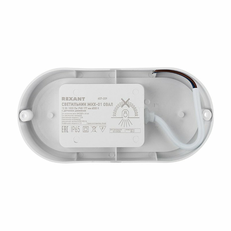 Светильник светодиодный Rexant 607-209 пылевлагозащищенный ЖКХ-01 овал 12 Вт 1000 Лм IP65 177 мм 6500 K с микроволновым датчиком движения