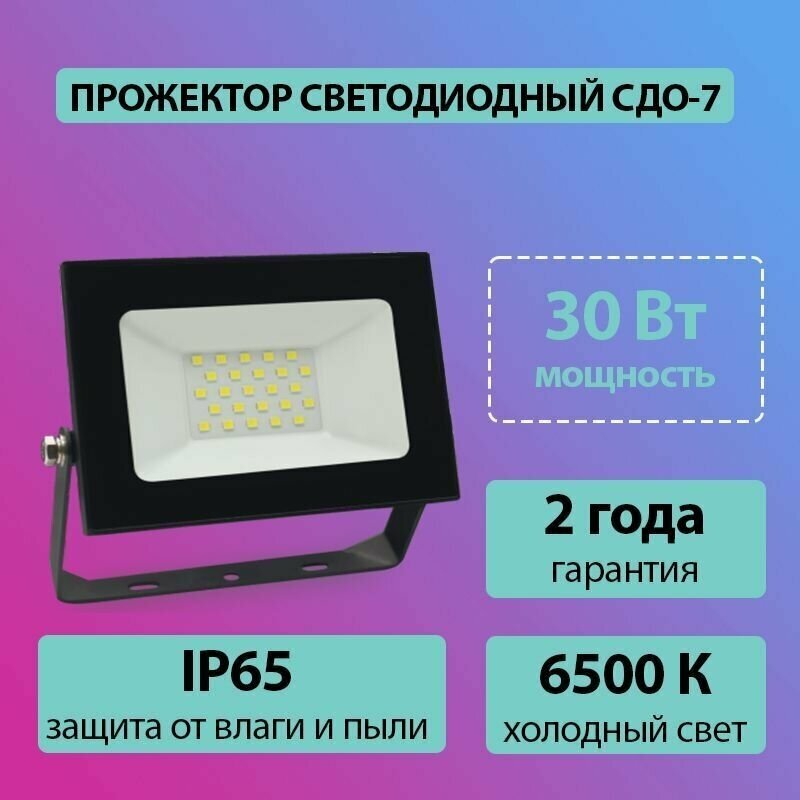 Прожектор светодиодный СДО-7 30Вт 230В 6500К IP65 черн. | код 4690612034621 | IN HOME ( 1шт. )