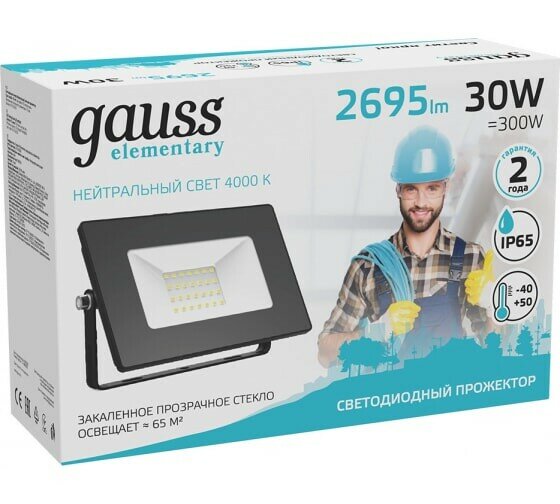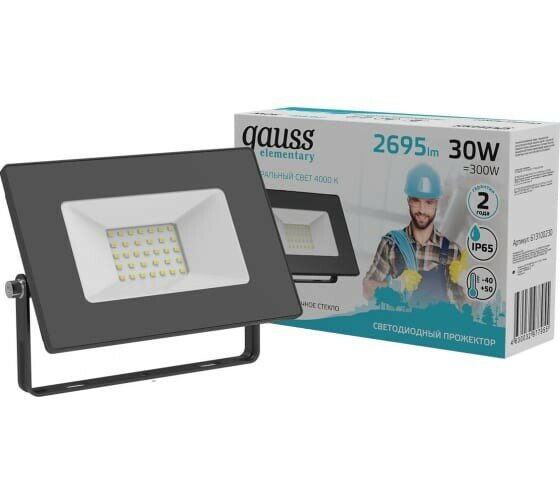 Прожектор светодиодный gauss Elementary 613100230, 30 Вт, свет: дневной белый