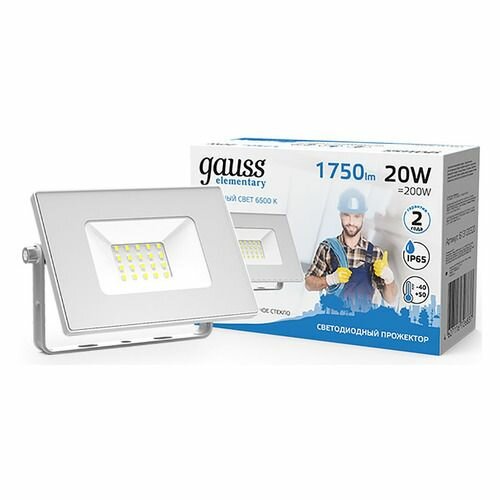 Прожектор Gauss Elementary 20W 1750lm 6500K 200-240V IP65 белый LED