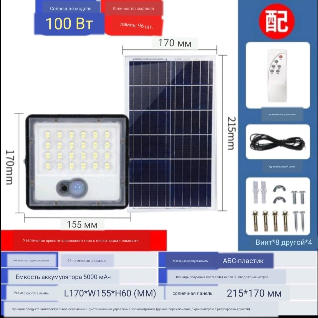 Прожектор на солнечных батареях 50 Вт, 360 лм, 5000 К, ПДУ