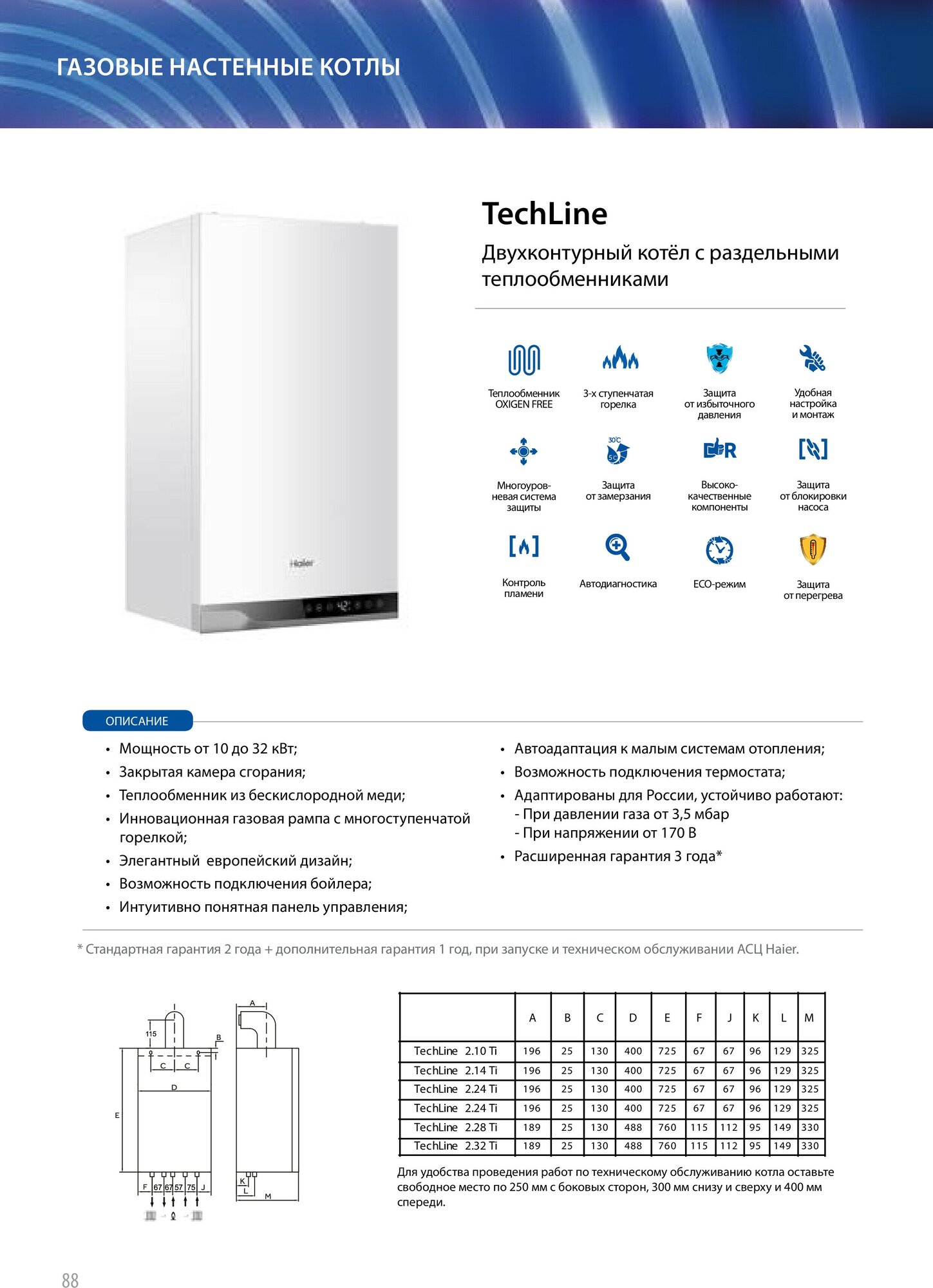 Газовый настенный двухконтурный котел Haier TechLine 2.14 Ti