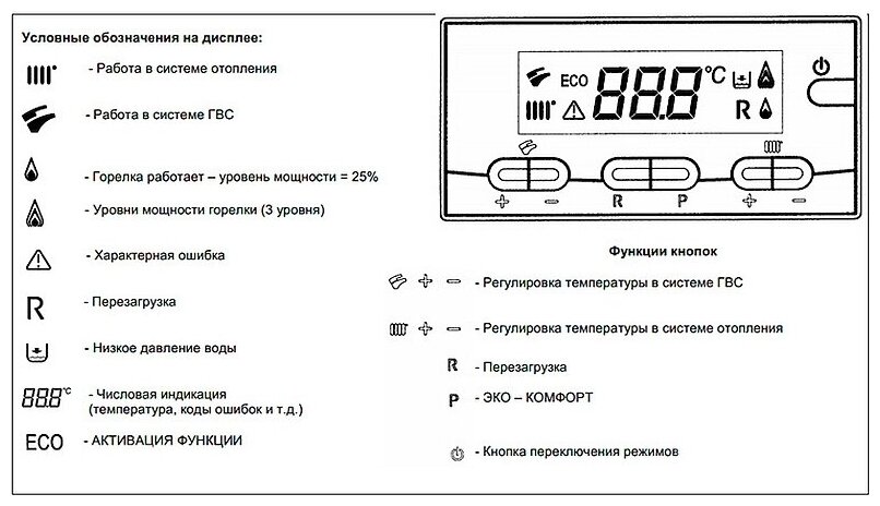 | Функции | автодиагностика, защита от замерзания, модуляция пламени, подключение теплого пола, защита от блокировки насоса, индикация включения, автоподжиг, защита от перегрева, термометр, манометр |