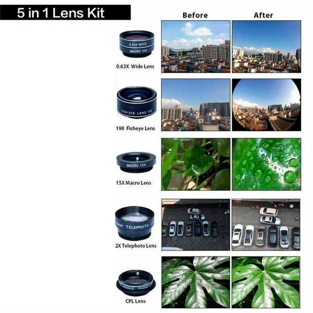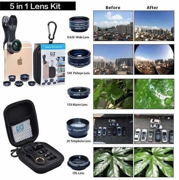 Комплект объективов Apexel 5-in-1 для смартфона (APL-DG5H) интересное: