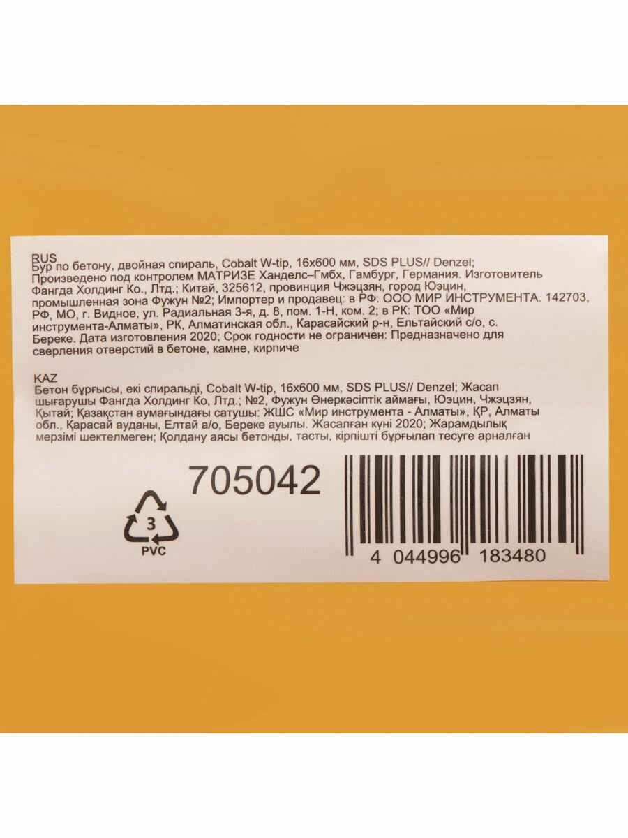 Ниже Вы можете прочитать отзывы на Бур по бетону, двойная спираль, Cobalt W-tip, 16x600 мм, SDS PLUS Denzel 705042, ознакомится с подробными характеристиками, посмотреть интересные обзоры и фотографии на Бур по бетону, двойная спираль, Cobalt W-tip, 16x600 мм, SDS PLUS Denzel 705042.