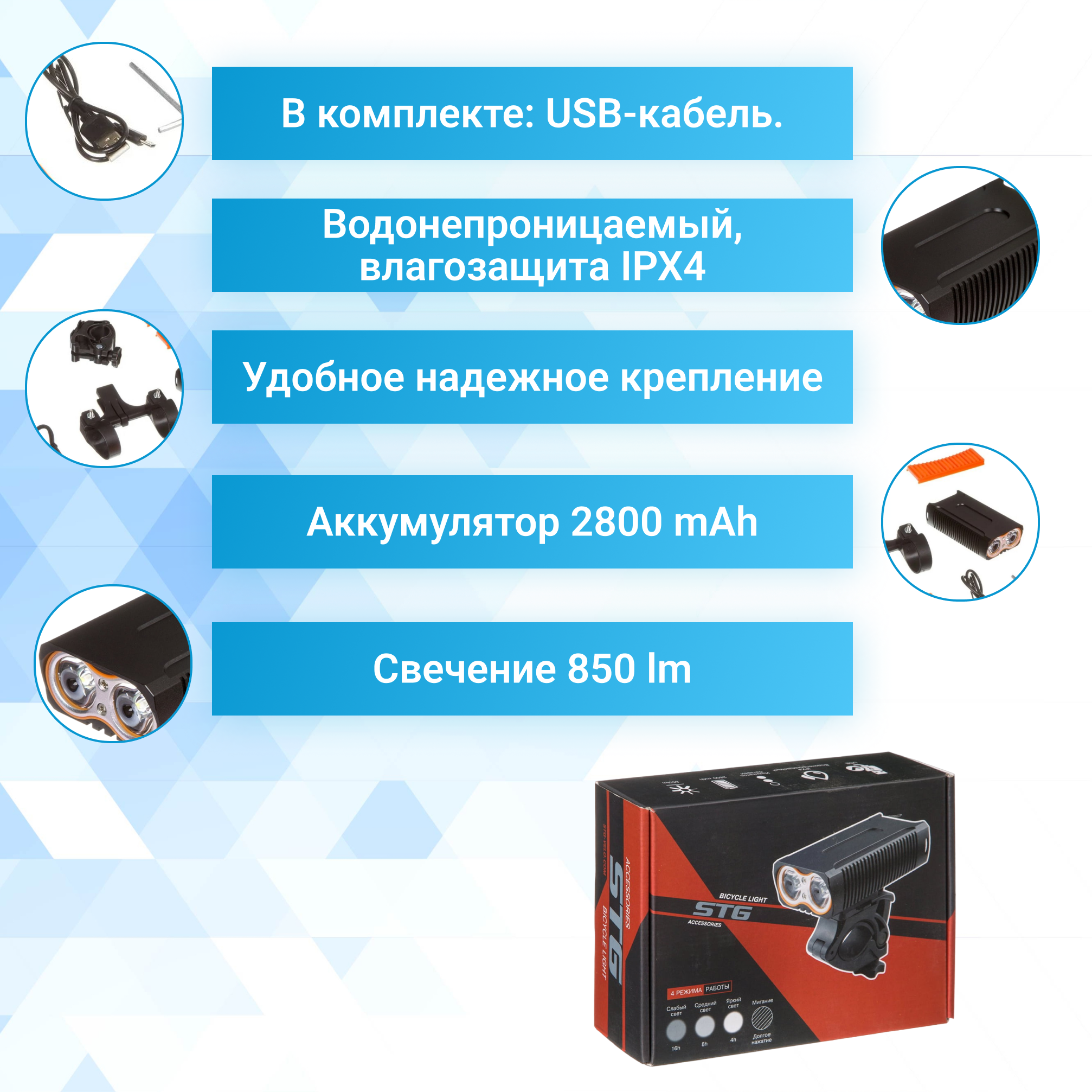 Фонарь передний STG BC-FL1598 USB Х98589 интересное: