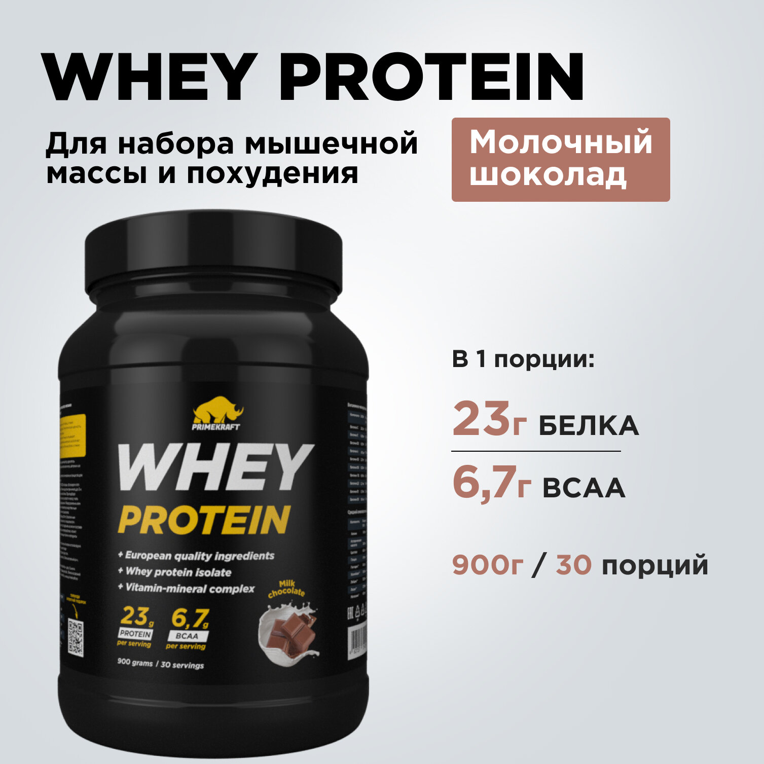 Протеин сывороточный PRIMEKRAFT Whey Protein, Молочный шоколад 900 г / 30 порций