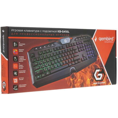 Купить Игровая клавиатура с подсветкой Gembird KB-G410L, подсветка Rainbow