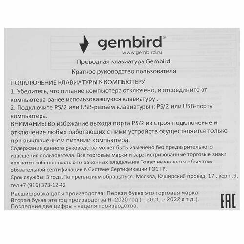 Клавиатура Gembird (18739) Kb-g410l .