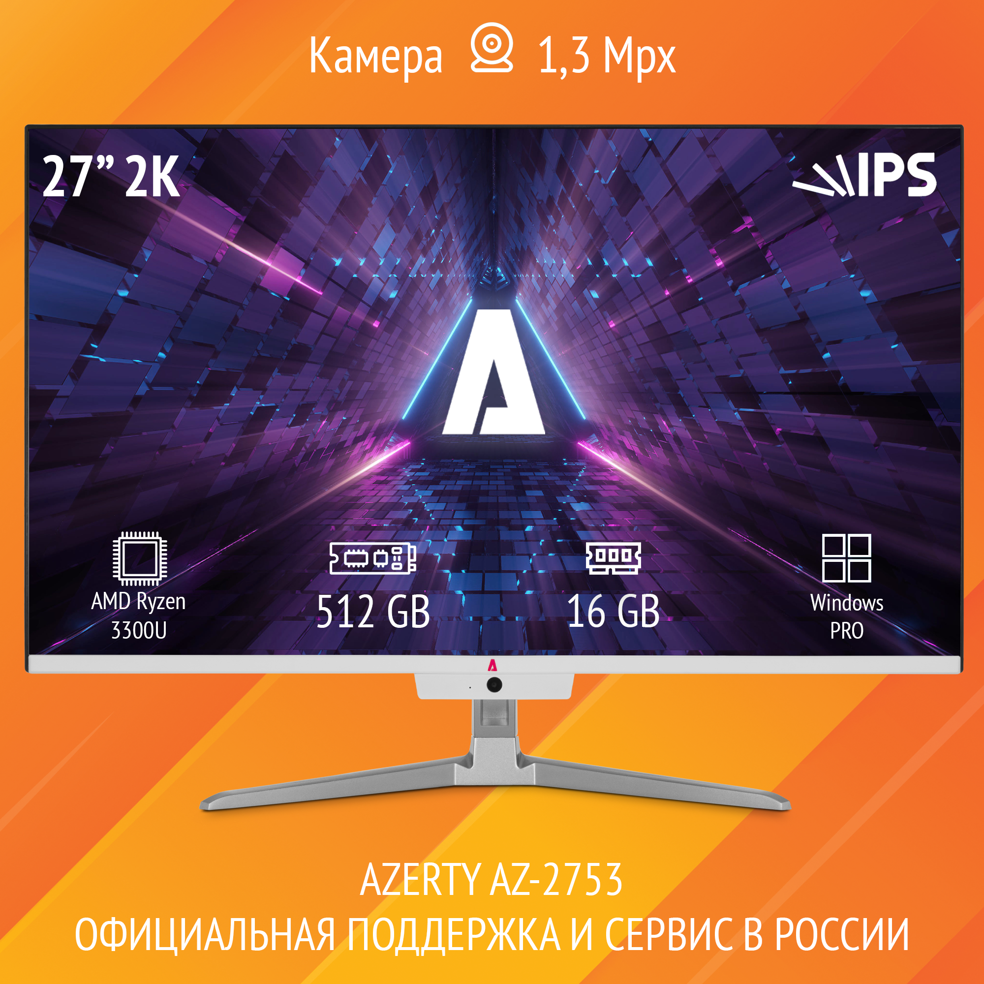 Купить Моноблок Azerty AZ-2753 (27" IPS 2560x1440, Ryzen 3 3300U 4x2.1GHz, 16Gb DDR4, 512Gb SSD)