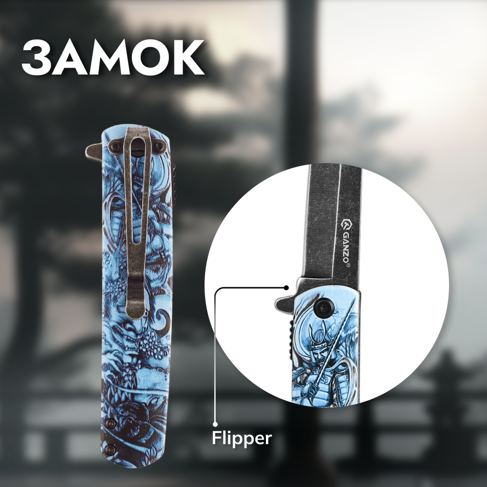 | Отзыв: | Давненько у Ганзо не было новинок, а здесь сразу такая красота. Дешево, красиво и круто, реально круто, так как форма не стандартная, а танто, рисунок это вообще отдельный вид искусства, и самое главное, он очень круто флипует, так как клинок с пружиной и очень легко открывается |