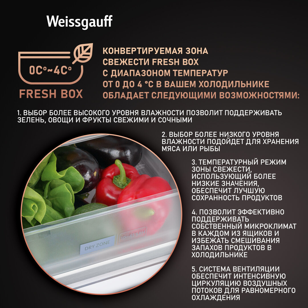 Холодильник WEISSGAUFF WCD 450 BG NoFrost Inverter, черный
