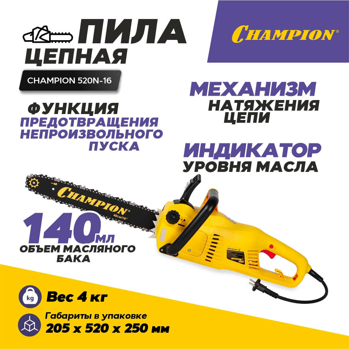 Купить Champion Электропила 520N-16" 3/8-1,3-57 (2кВт 4,0кг)