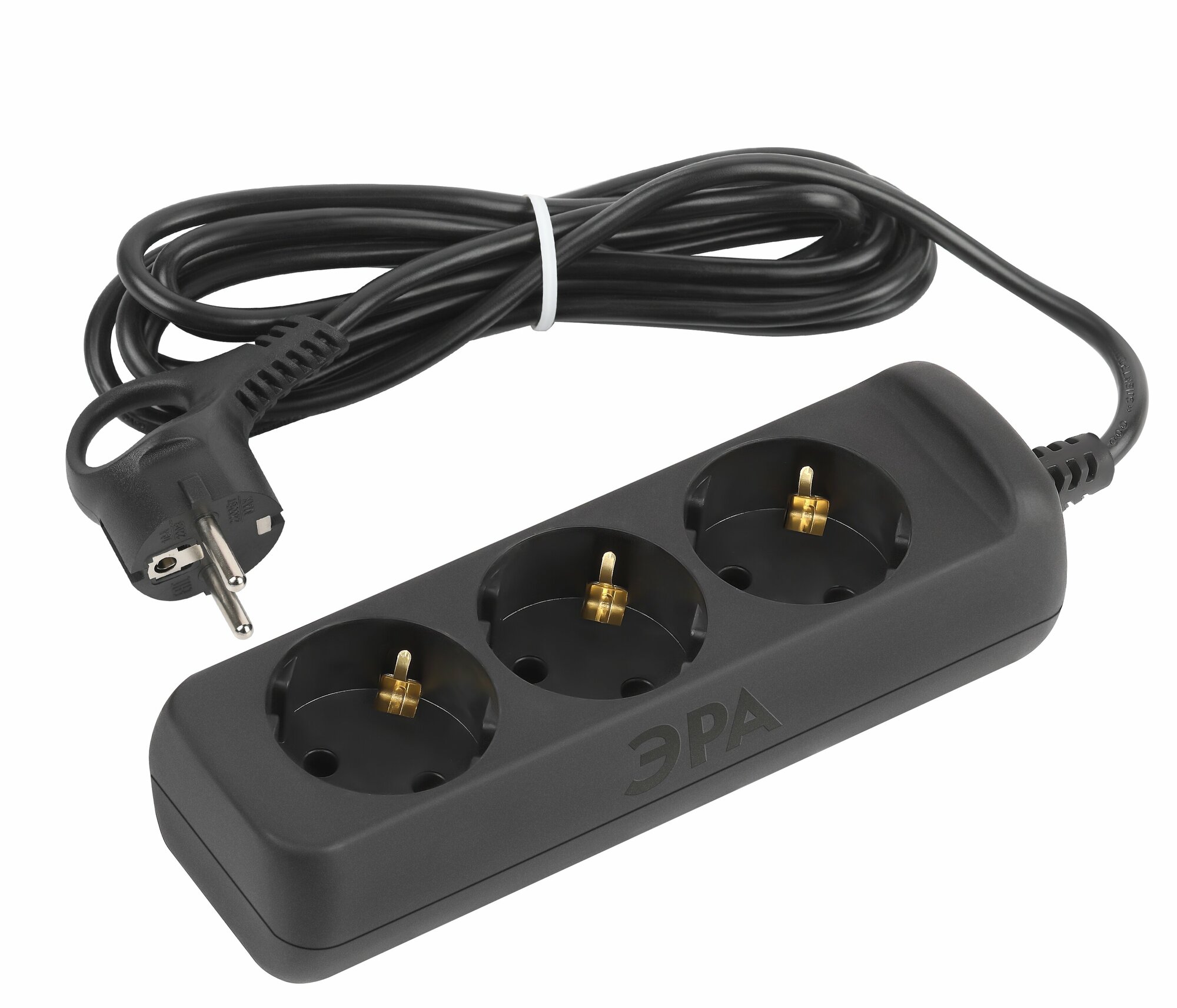 Удлинитель электрический UX-3e-5m-B с заземлением 3 розетки 5м ПВС 3x0,75мм2 10А черный, ЭРА Б0057723 (1 шт.)