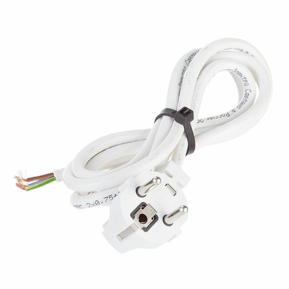 Шнур сетевой (ЦБ-00013569) c заземлением 1,5 м 10 А 380 В 2,2 кВт ПВС-ВП 3х0,75 IP20 с вилкой белый