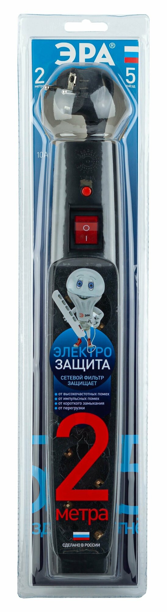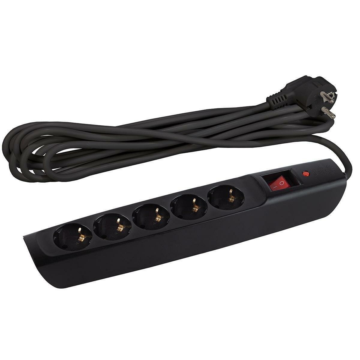Сетевой фильтр ЭРА SFX-5es-2m-B с надежной защитой с заземлением с выключателем 5 розеток 2м 10А черный