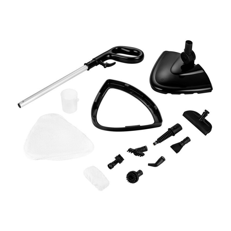 | Дополнительная информация | Комплектация 1. Паровая швабра с крышкой резервуара для воды — 1 шт. 2. Удлинительная ручка — 1 шт. 3. Щетка для пола — 1 шт. 4. Тряпка для пола — 1 шт. 5. Рамка для ковра — 1 шт. 6. Струйная насадка — 1 шт. 7. Угловая насадка –– 1 шт. 8. Скребок — 1 шт. 9. Насадка для отпаривания со скребком — 1 шт. 10. Тряпка для отпаривания –– 1 шт. 11. Плоская нейлоновая щетка –– 1 шт. 12. Малая круглая нейлоновая щетка — 1 шт. 13. Большая круглая нейлоновая щетка –– 1 шт. 14. Мерный стаканчик — 1 шт. 15. Руководство по эксплуатации — 1 шт. 16. Коллекционный магнит — 1 шт.* *опционально |