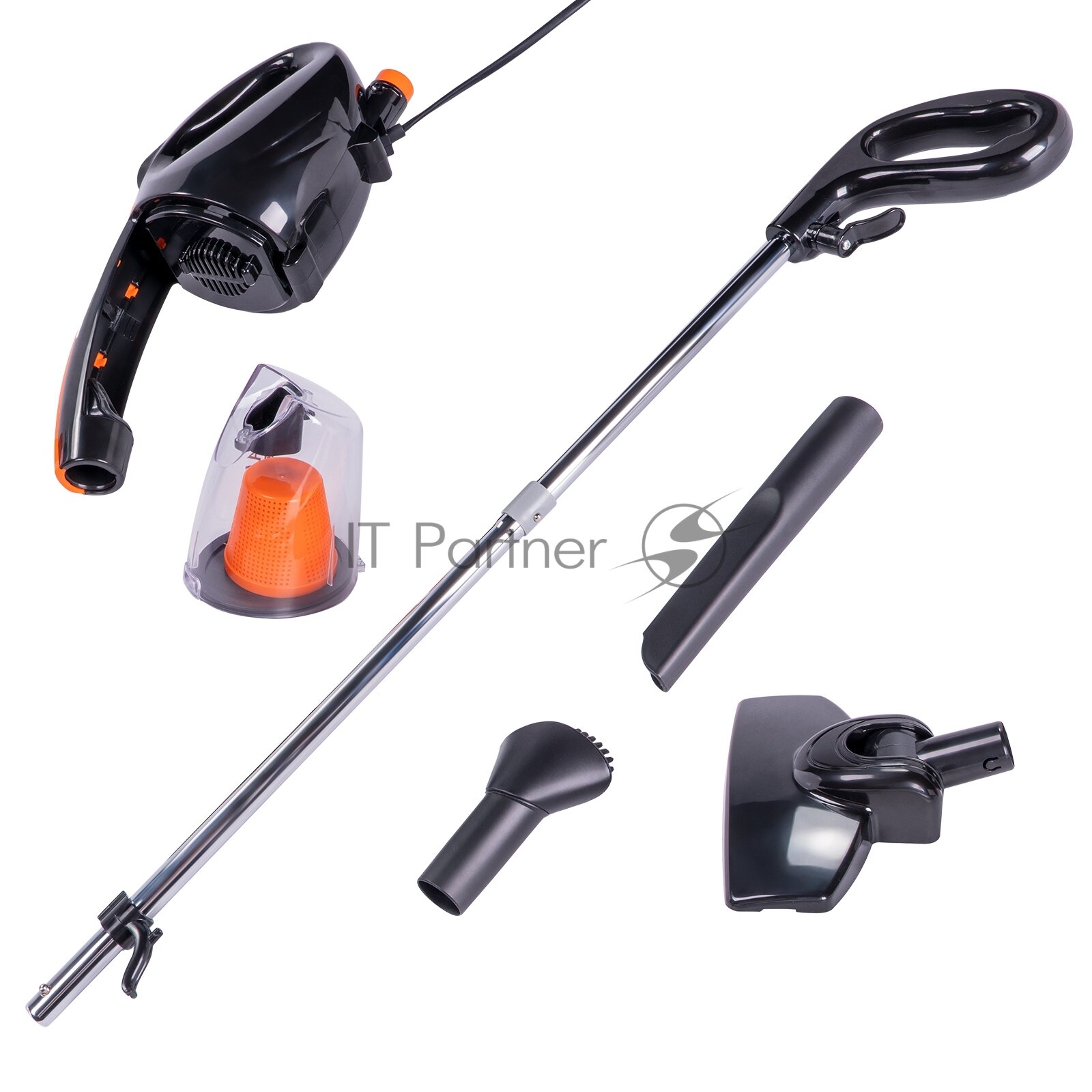 Пылесос вертикальный с контейнером для сухой уборки дома Galaxy LINE GL6232, насадка для пола/ковров, щелевая, насадка-щетка для мебели, черный/оранжевый