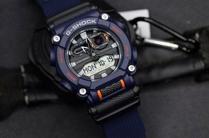 Наручные часы CASIO G-Shock GA-900-2A мужские, кварцевые, будильник, хронограф, секундомер, таймер обратного отсчета, водонепроницаемые, противоударные, подсветка дисплея, синий