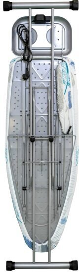| Плюсы: | Широкая платформа для глажки, устойчивые ножки, хороший фиксатор регулировки высоты, розетка, антипригарный чехол. |