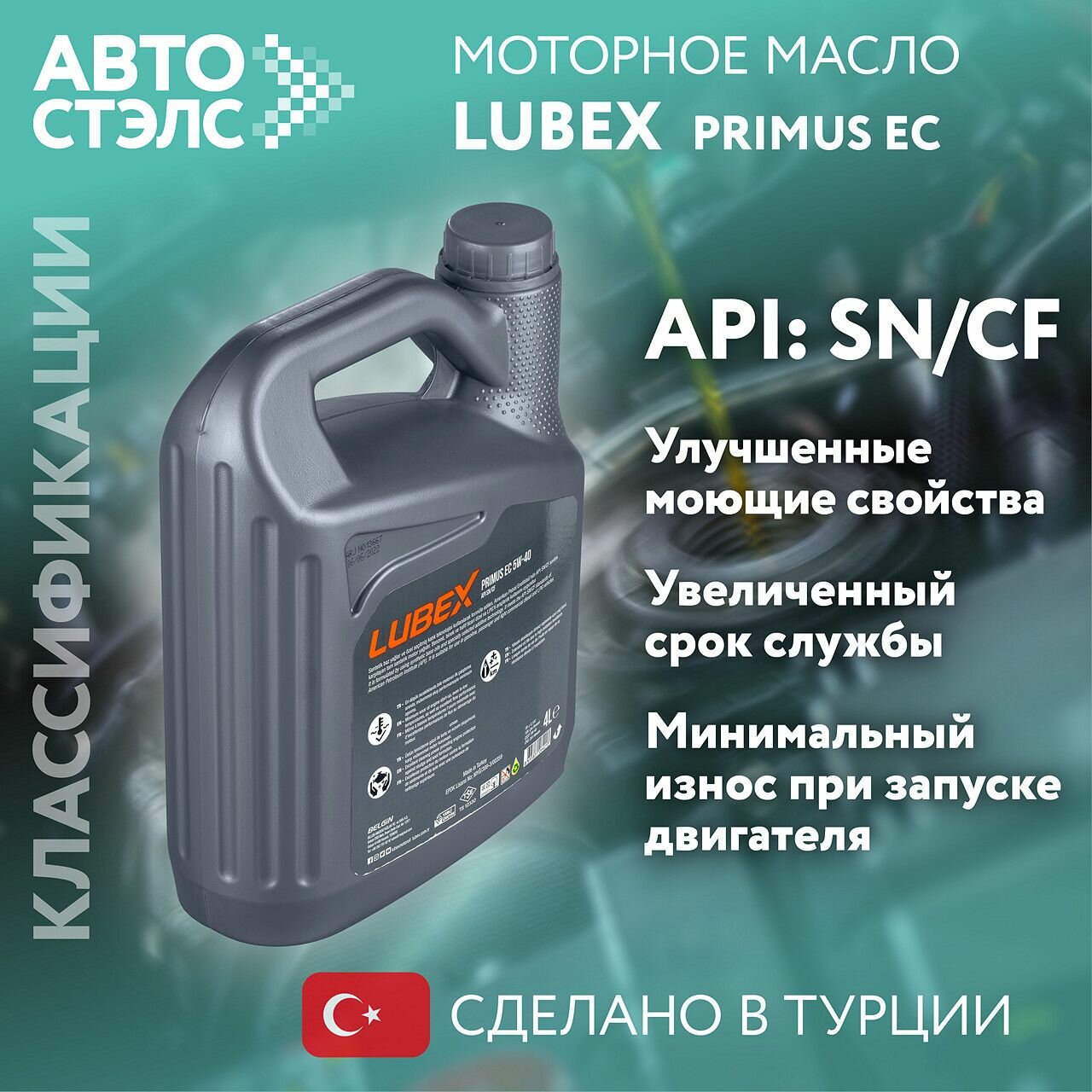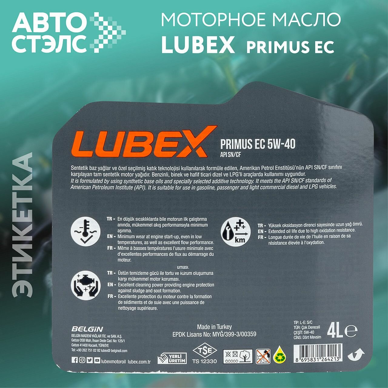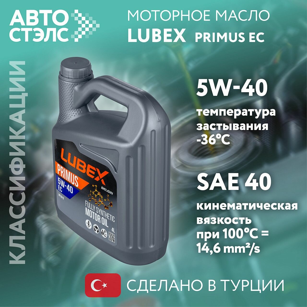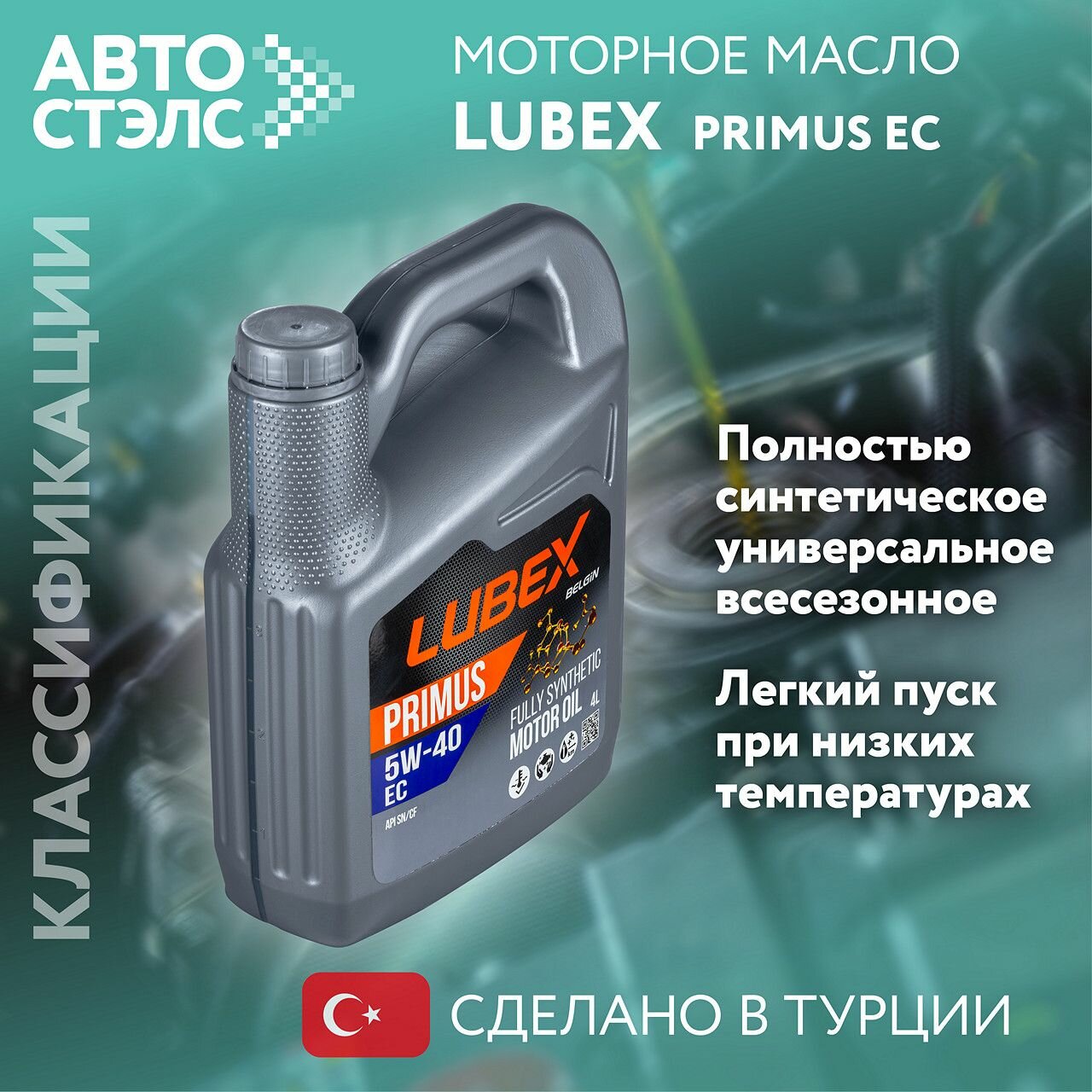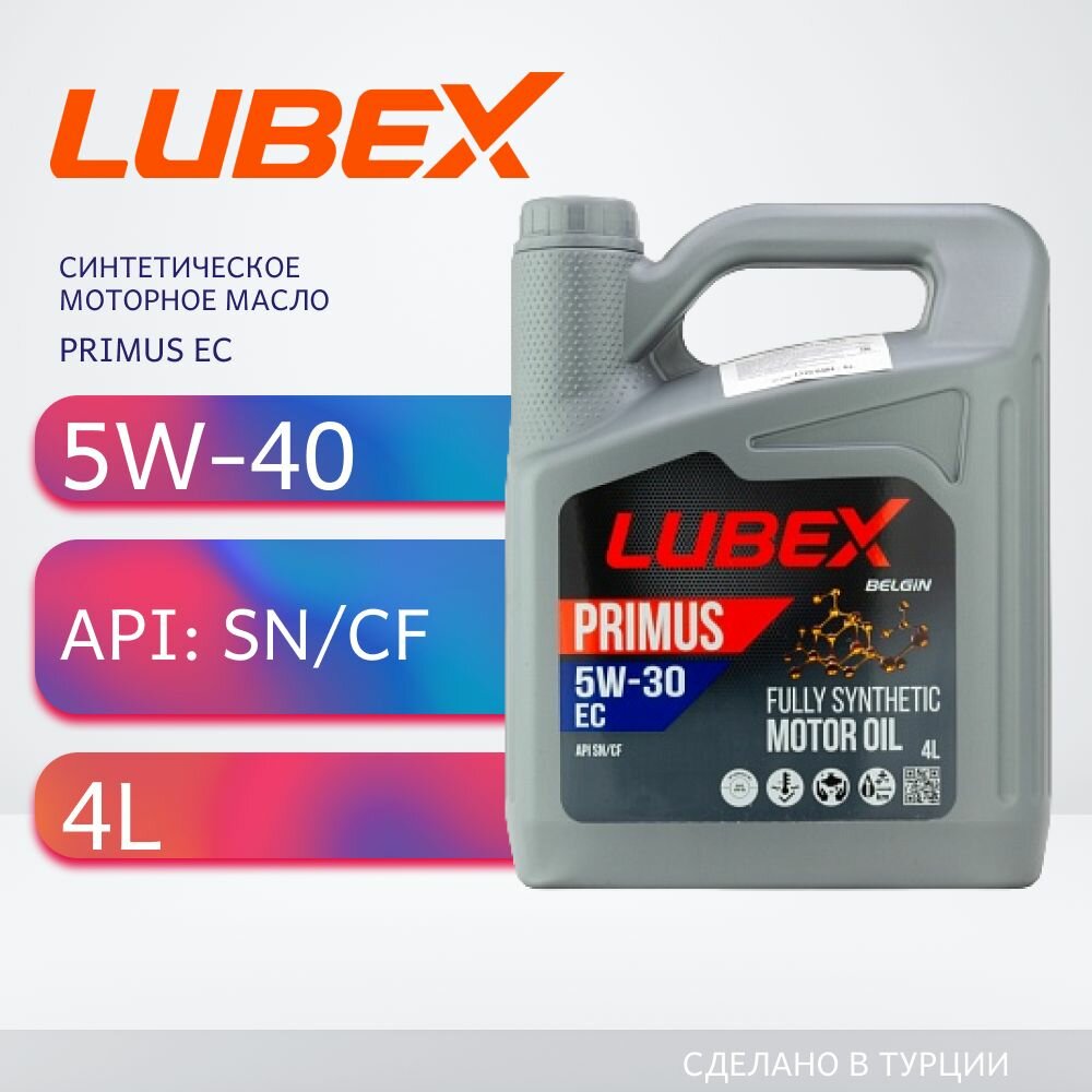 Синтетическое моторное масло LUBEX PRIMUS EC 5W-40, 4 л, 1 шт.