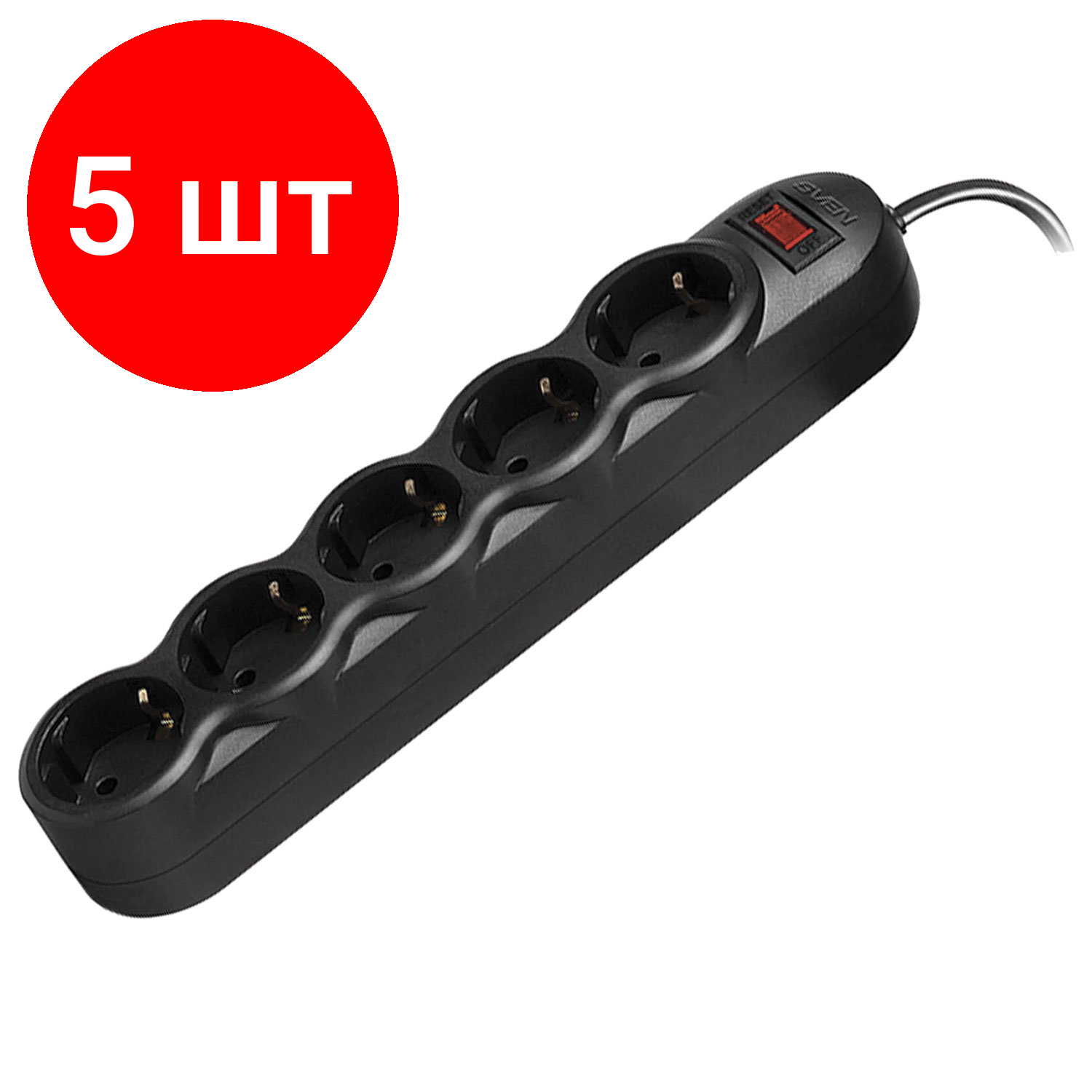 Сетевой фильтр SVEN SF-05L, 5 розеток, 3 м, черный, SV-015077
