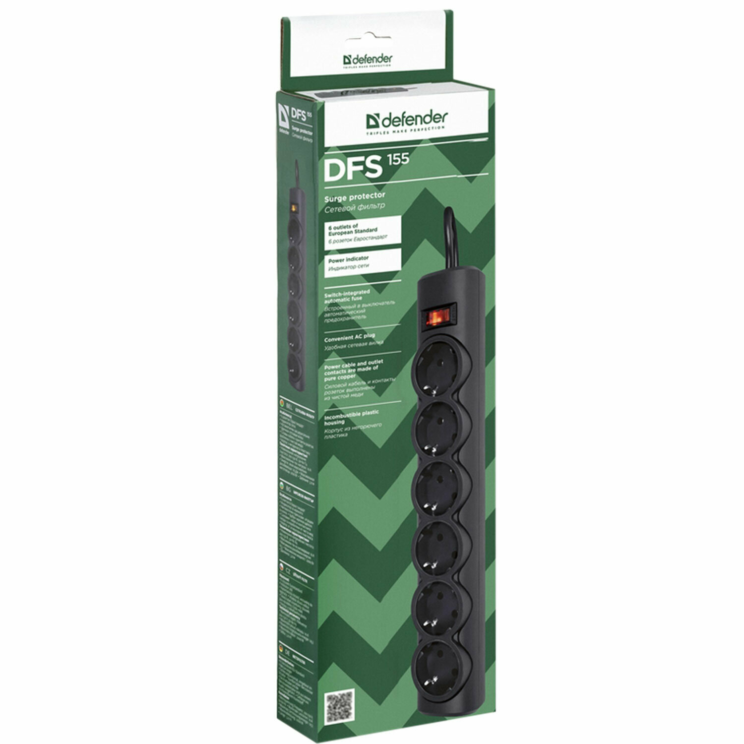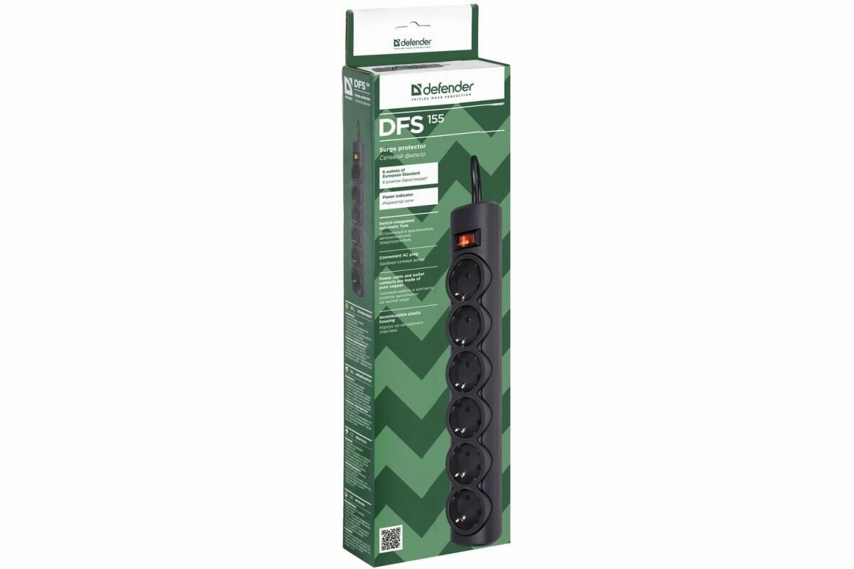 Сетевой Фильтр Defender DFS 155 black (5 м, 6 розеток) (99496)