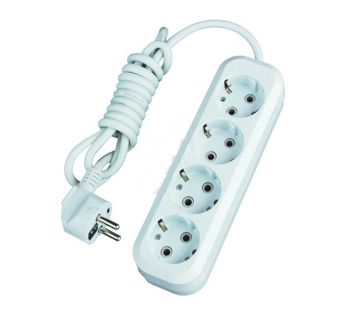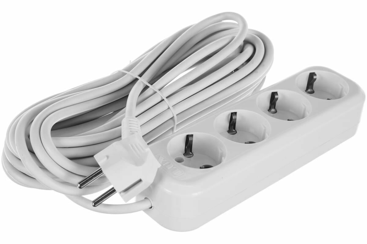 Удлинитель LUX У4-Е, 4 розетки, с/з, 16А / 3500 Вт белый 10 м 1.5 м² 4