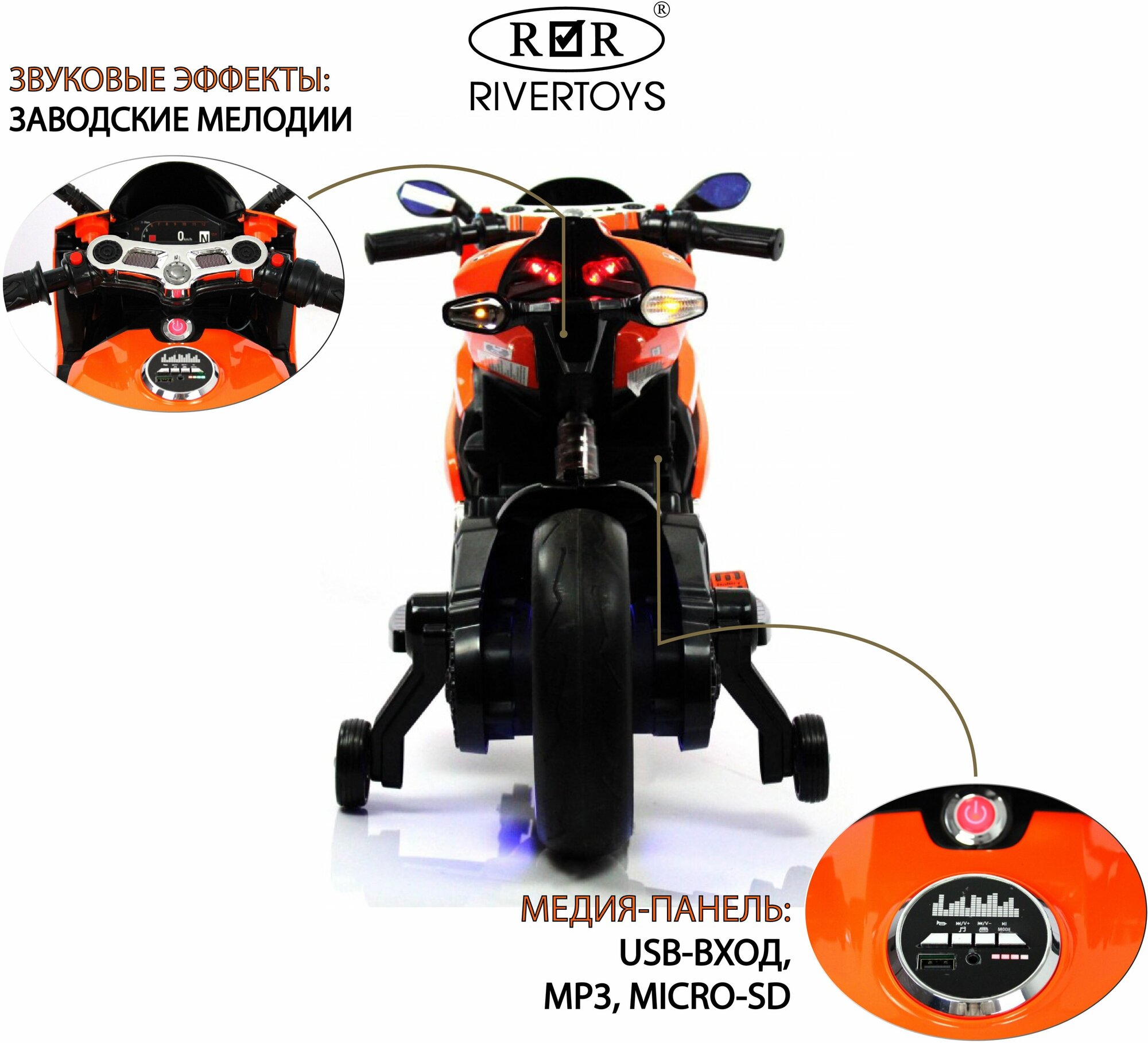 RiverToys Детский электромотоцикл A001AA оранжевый