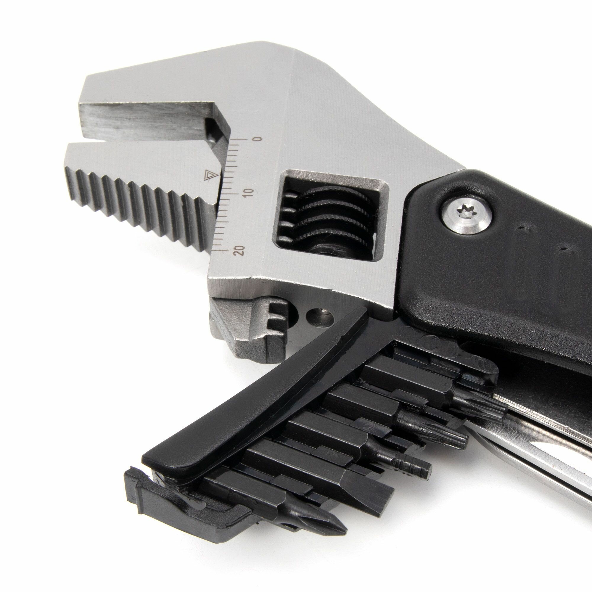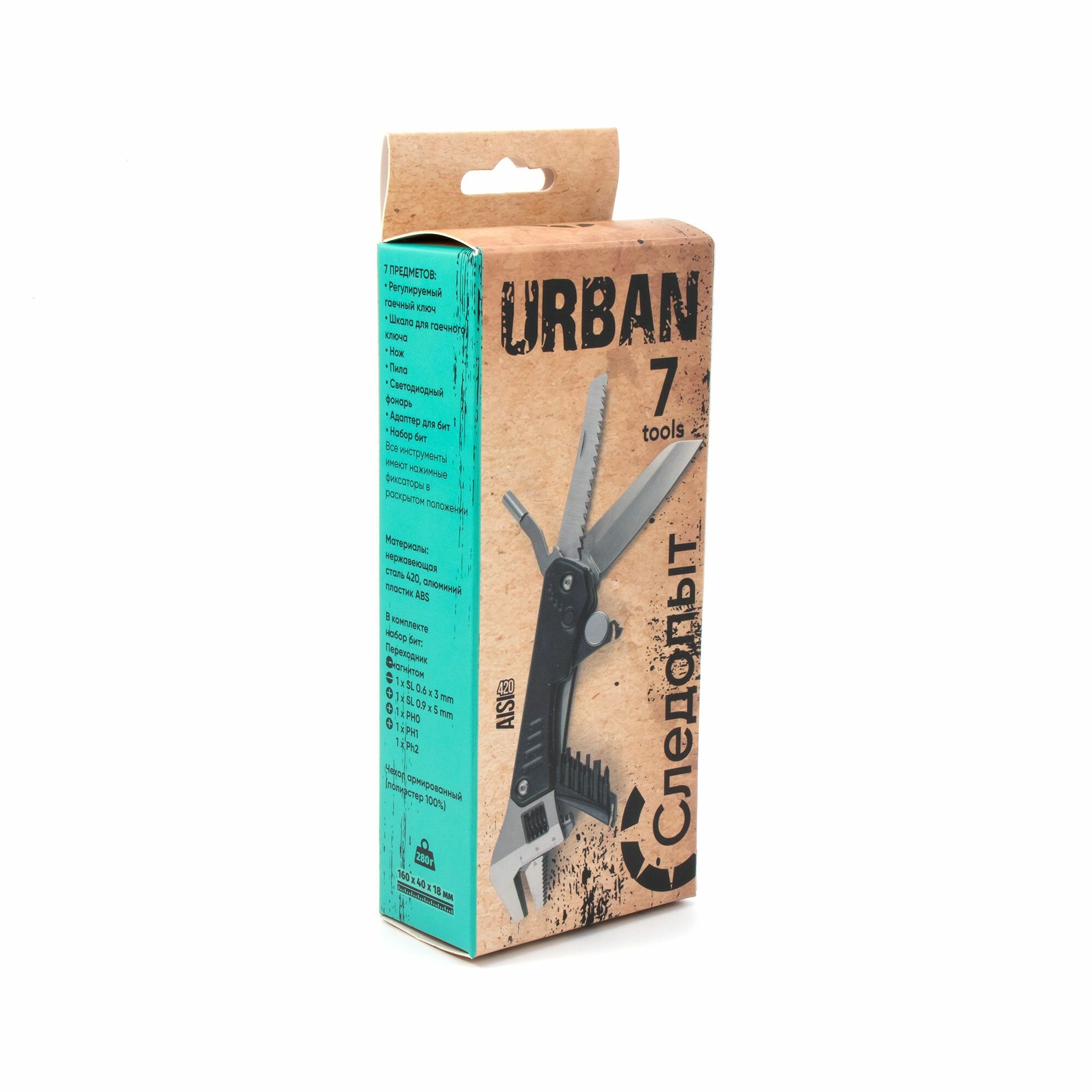 Купить Мультитул походный 7 в 1 "следопыт-urban" в чехле, с набором бит - гаечный ключ, нож, пила, фонарь, адаптер бит