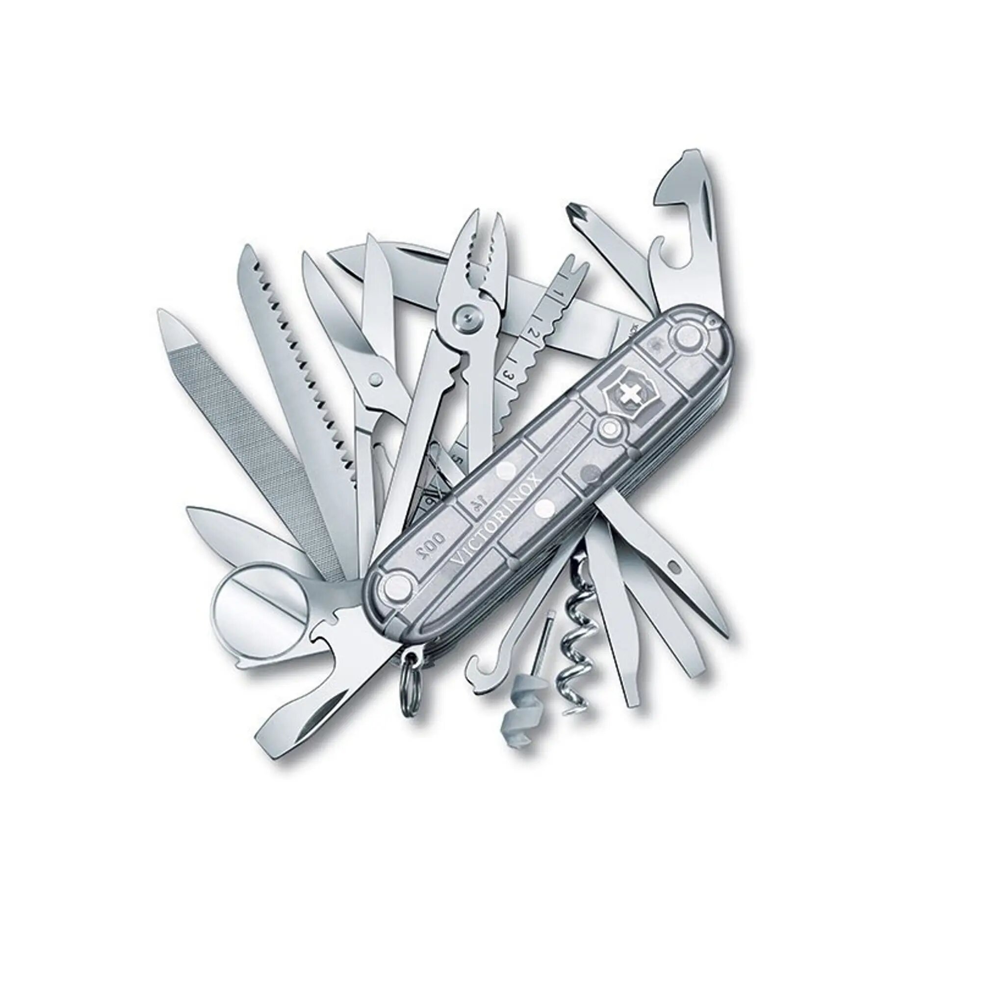 Нож перочинный Victorinox Swiss Champ, 91 мм, 31 функции, полупрозрачный серебристый