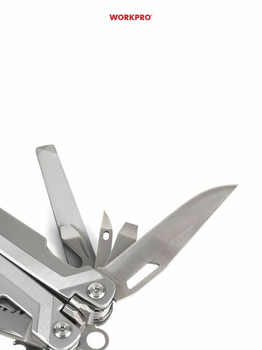 Мультитул универсальный 15 в 1, WP382002, WORKPRO, цвет серебристый