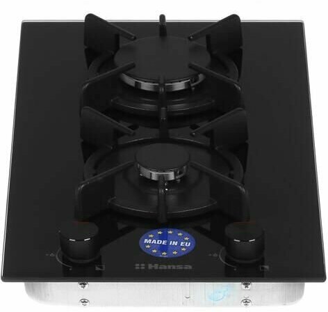 Газовая варочная поверхность Hansa BHKS330300, двухконфорочная, стеклянная поверхность, с газ-контролем и автоподжигом, черная